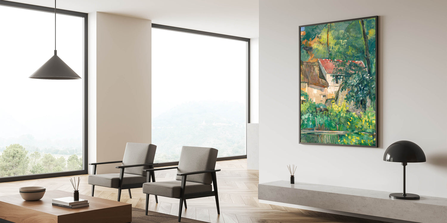 This Cézanne landscape embodies the peacefulness of nature, bringing a timeless, organic ambiance to any space. A beautiful reminder of rural life, it’s perfect for those looking to infuse their decor with a touch of classic Impressionism.
