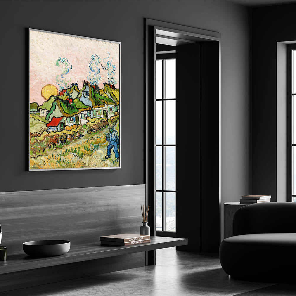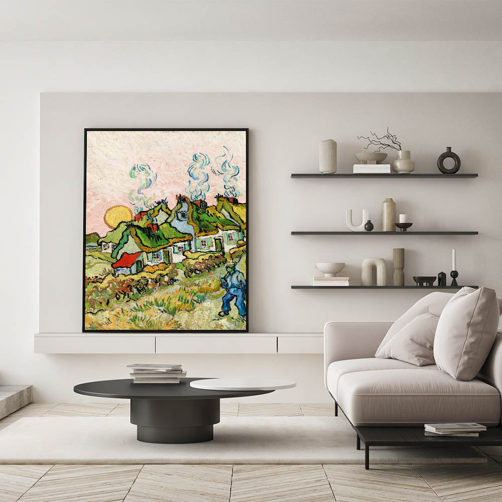 Impressionist Village Scene Wall Art - Van Gogh's Houses and Figure Print