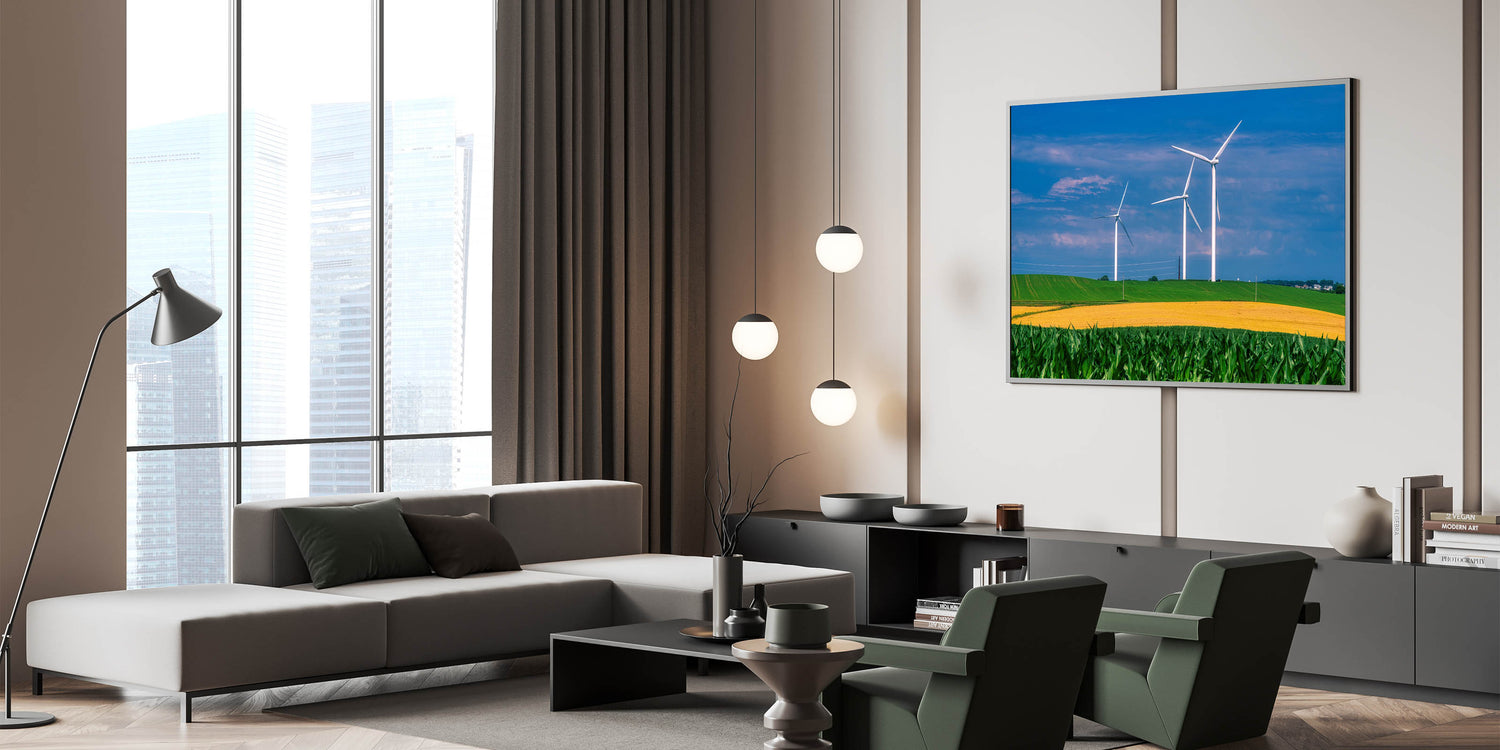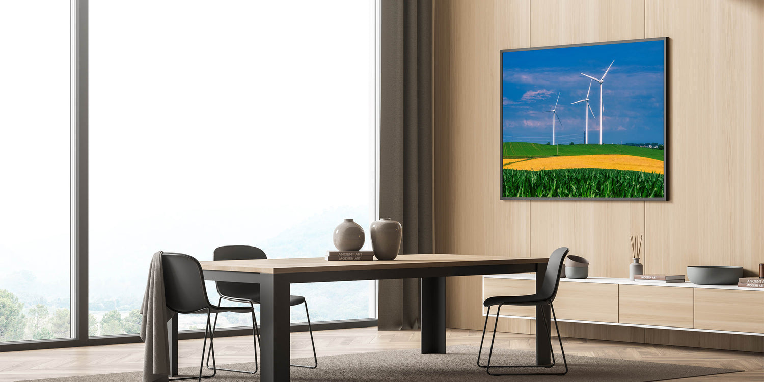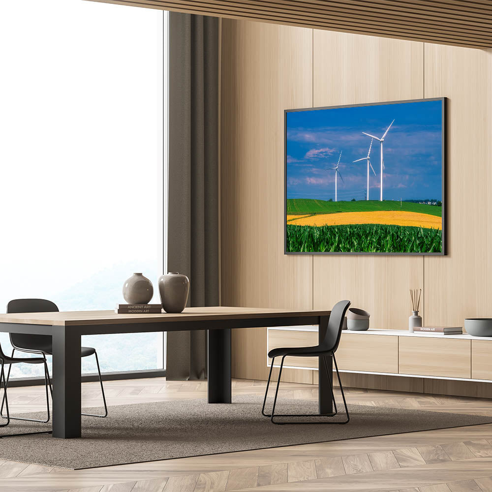 Capture the harmony of Iowa's natural landscape and modern energy with this stunning Iowa Canvas Print. This vibrant photograph features wind turbines standing tall over lush green fields and golden farmlands, symbolizing the perfect balance of nature and technology in Iowa rural scenery. Ideal for those who appreciate Iowa home decor with a contemporary touch, this artwork is available in a variety of formats, including stretched canvas, framed prints, and acrylic glass, ensuring a perfect fit for your space.