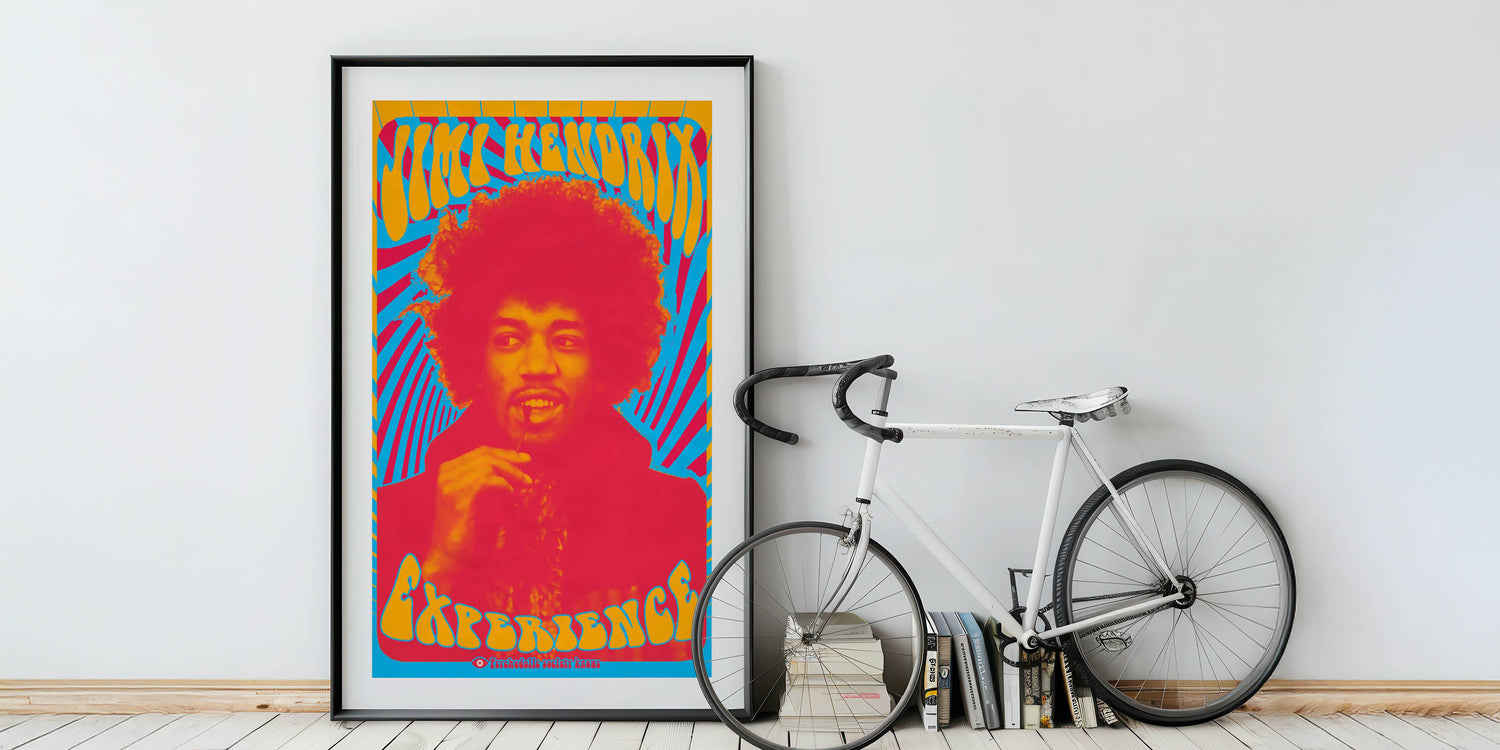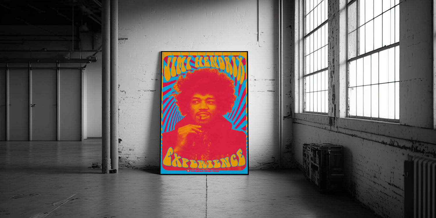 - A bold tribute to the Jimi Hendrix Experience, encapsulating the Mid-Century Modern Art era