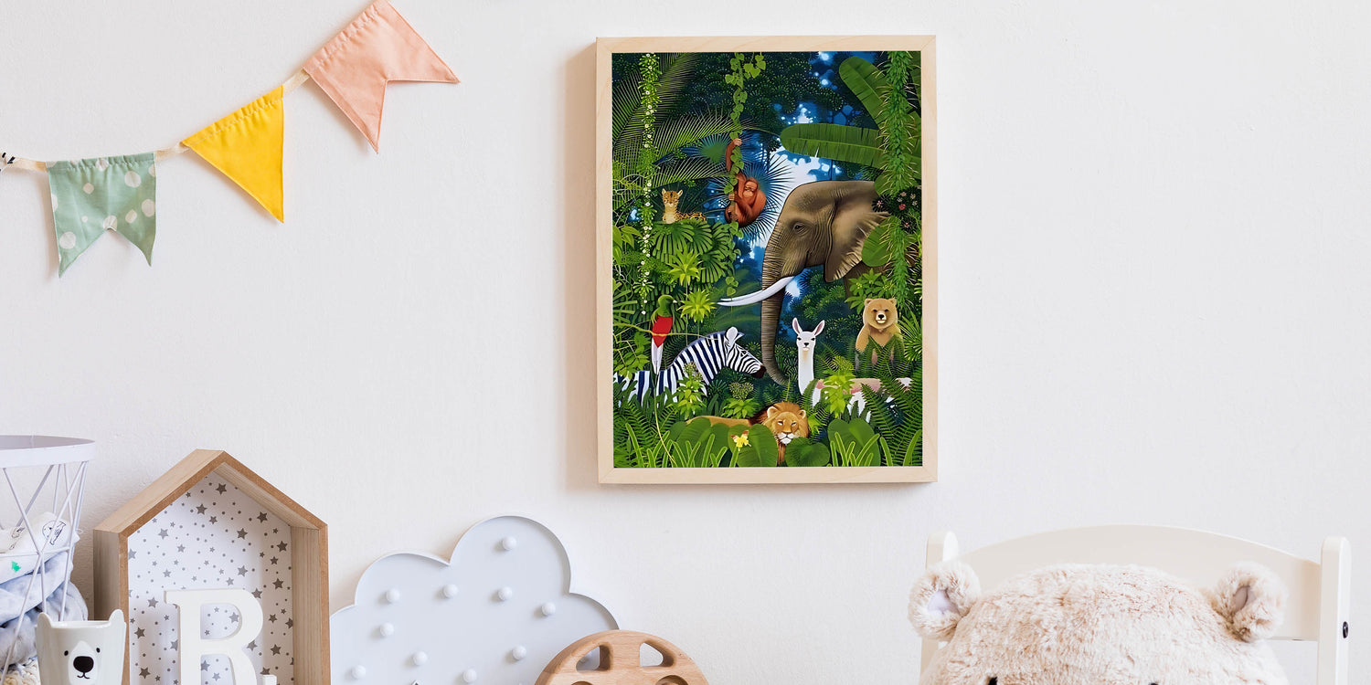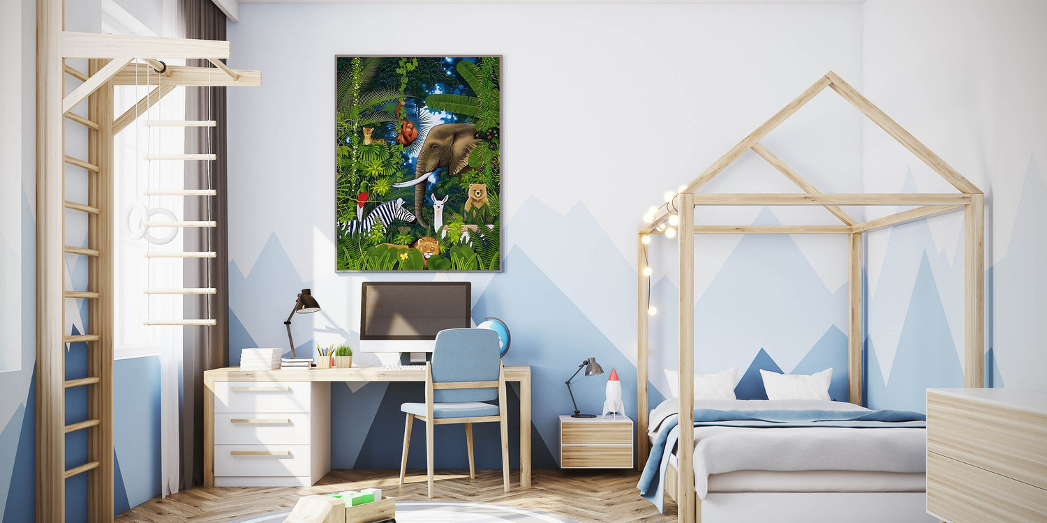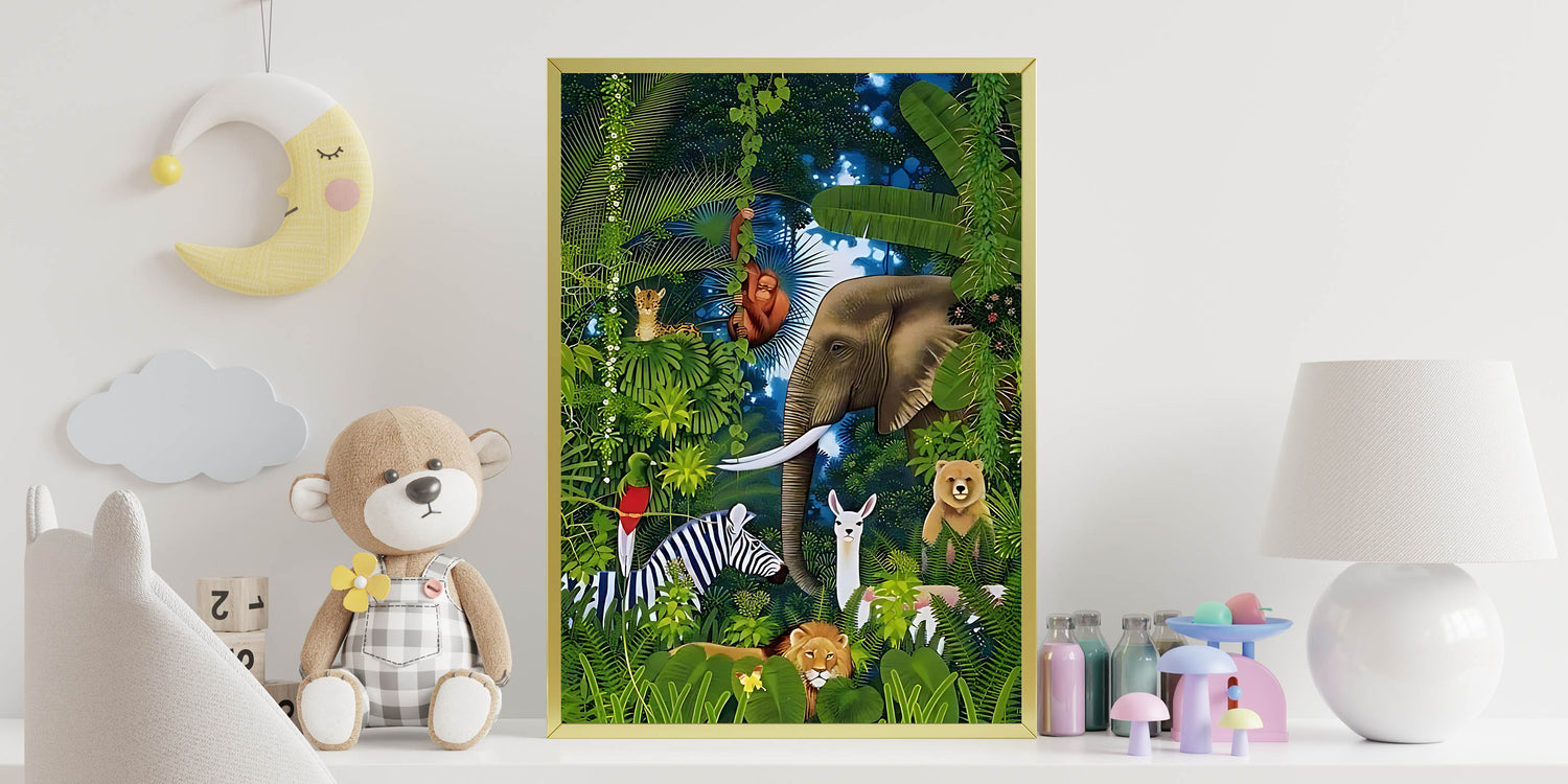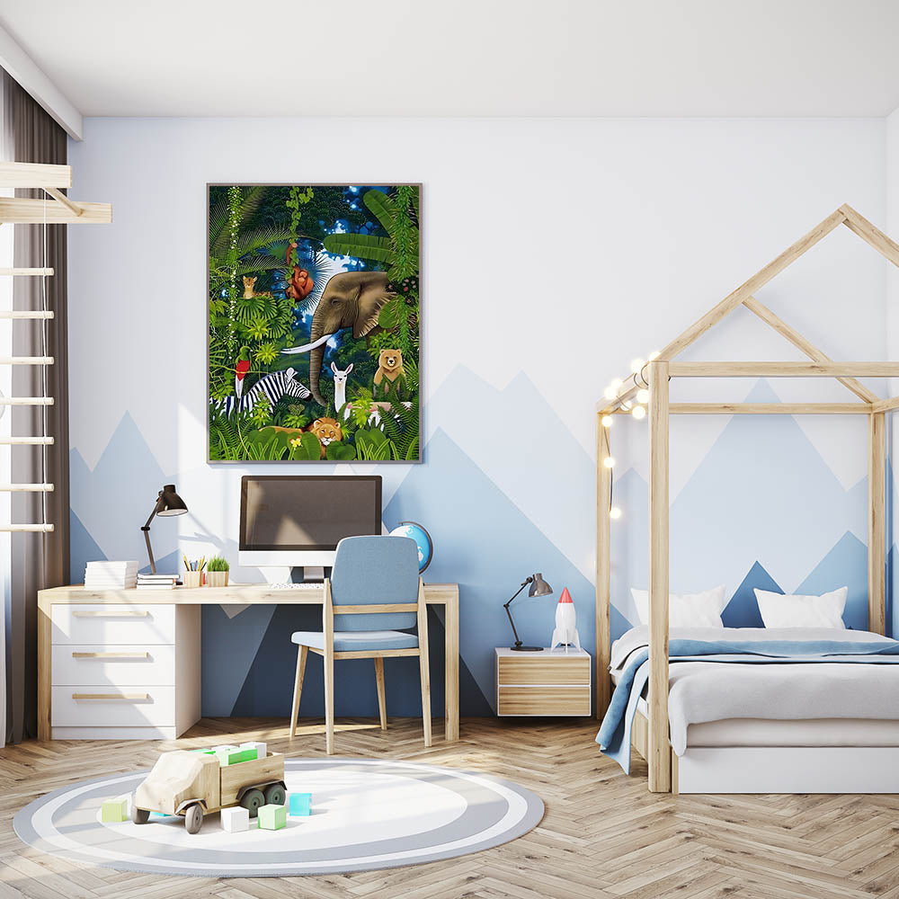 • Framed Canvas Kids Art: A refined option to showcase this detailed jungle scene.