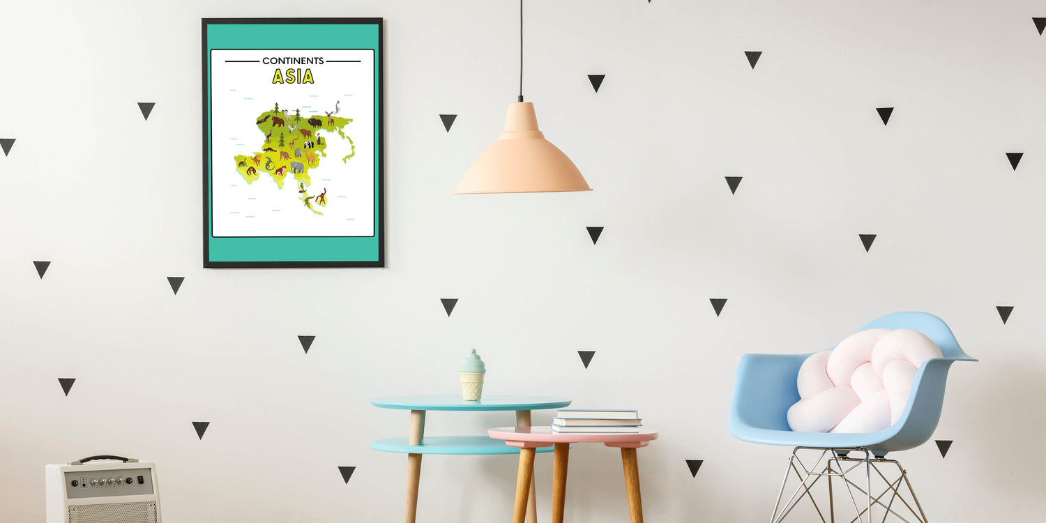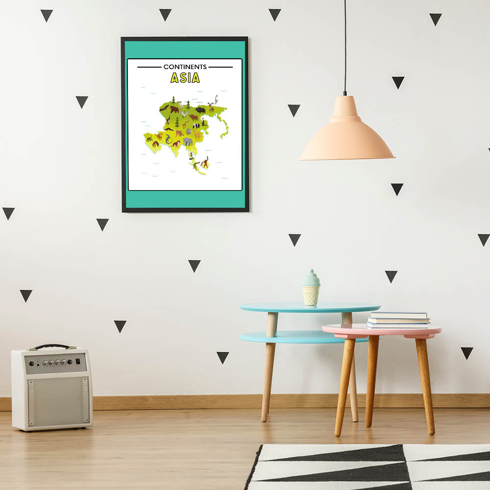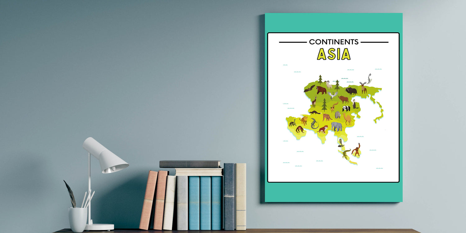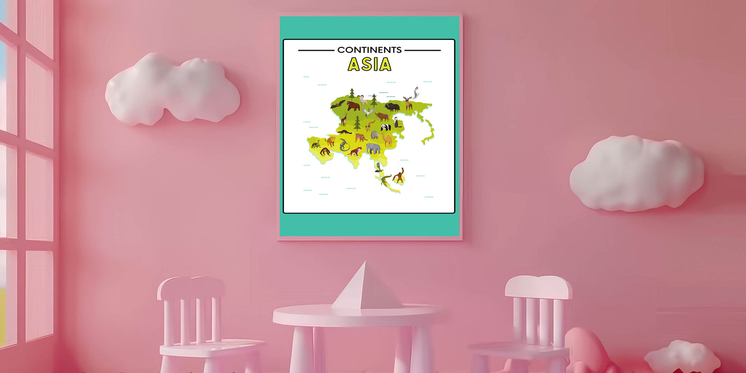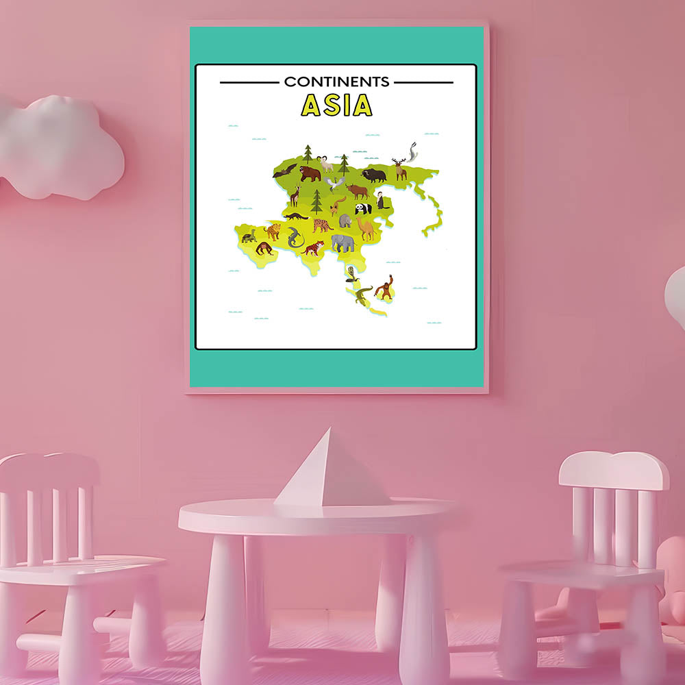 Kids Educational Wall Art – Asia Continent Map Learning Print