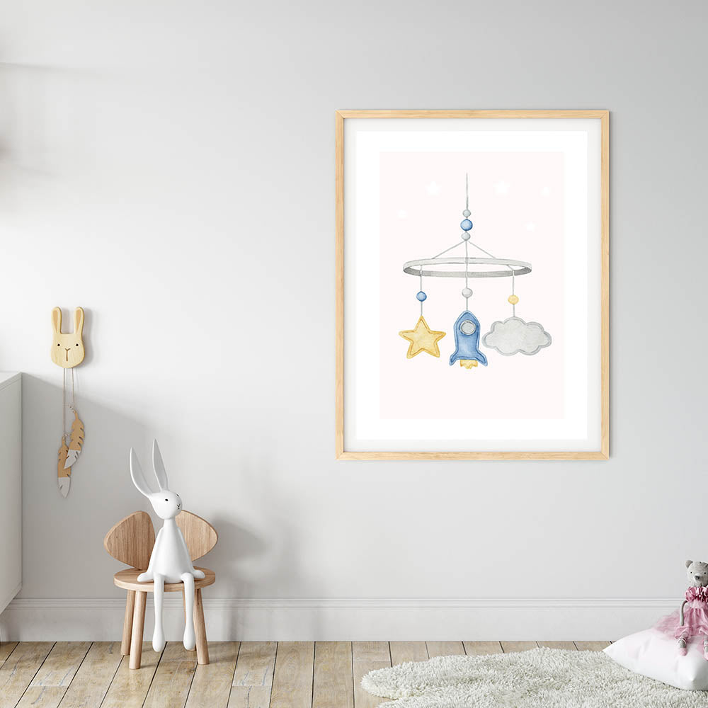 Kids Room Art Prints - Rocket & Star Mobile Nursery Wall Art
