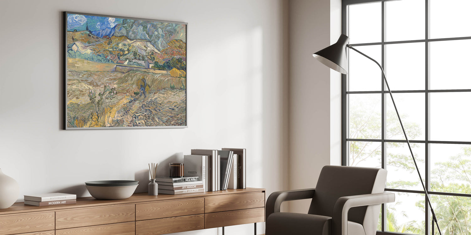 - High-quality reproduction of Vincent van Gogh’s "Landscape at Saint-Rémy"