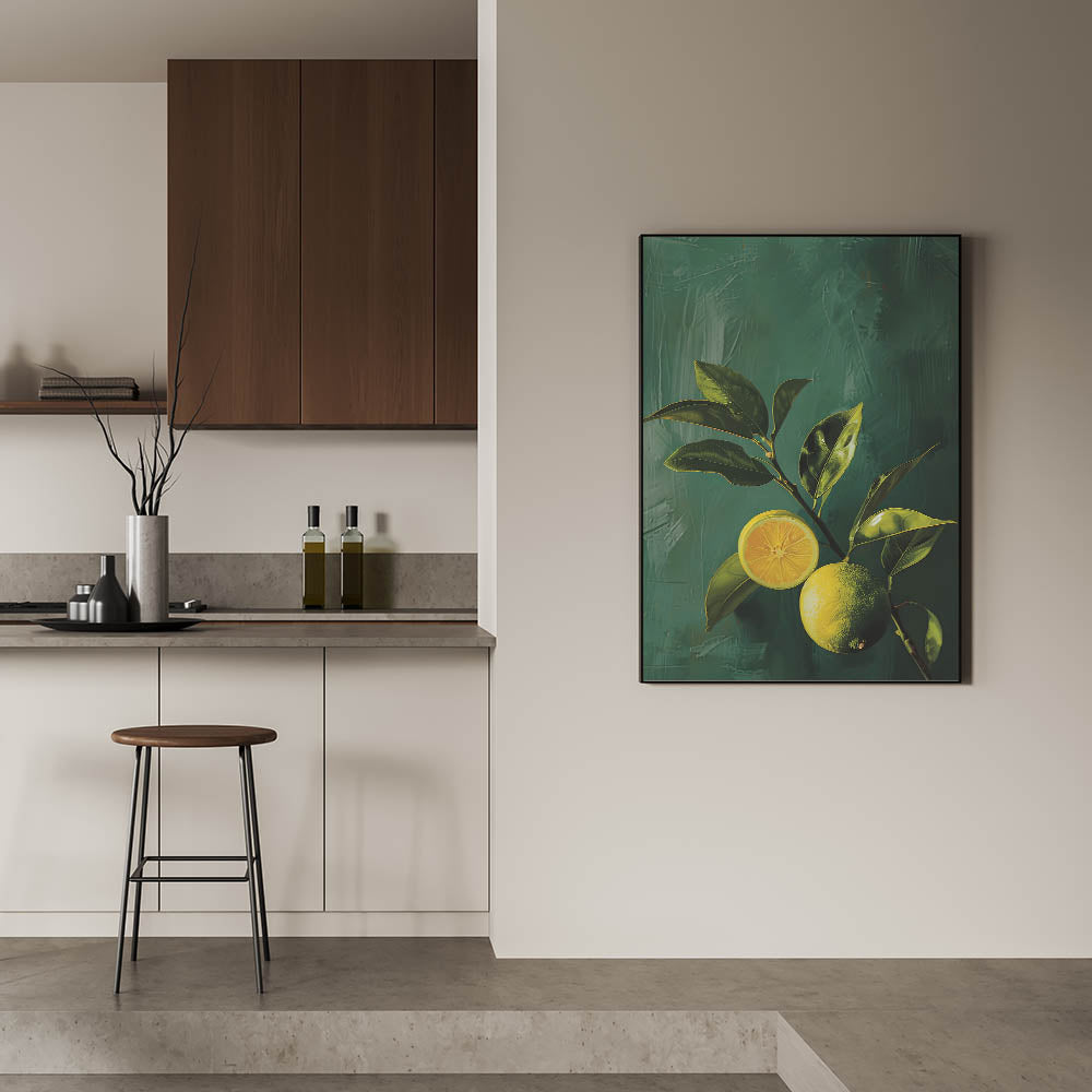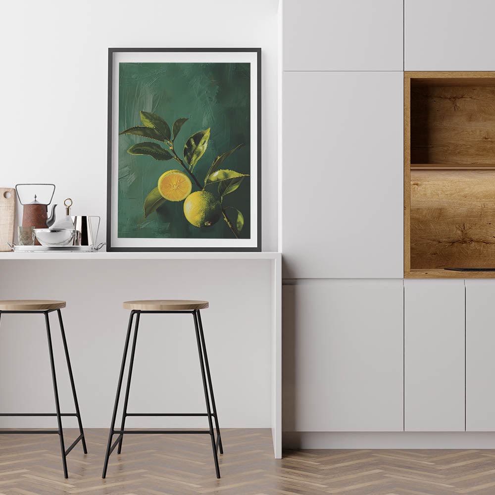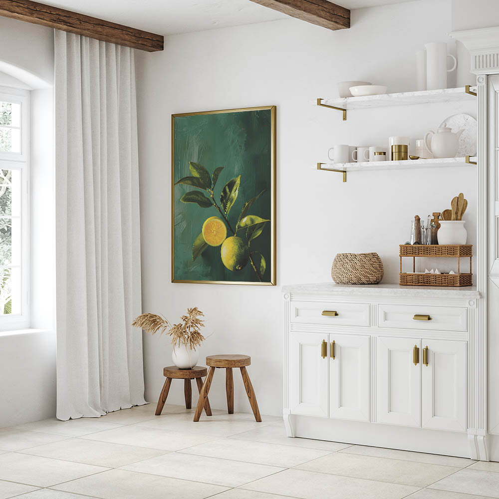 This fruit still life art captures the vibrancy of citrus trees, making it a must-have for lovers of nature-inspired decor. Whether adorning a bright breakfast nook or a cozy kitchen space, this artwork brings a lively, organic charm.