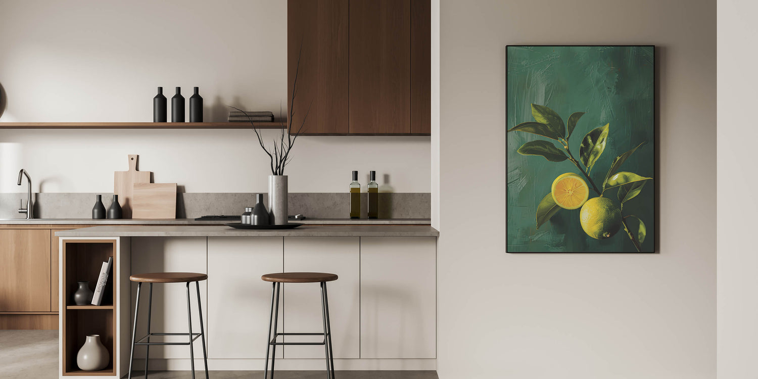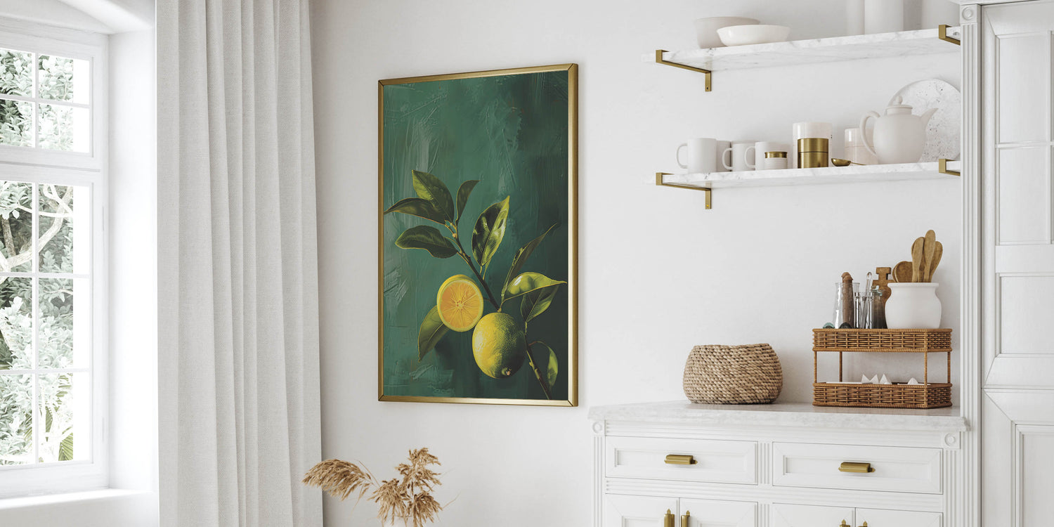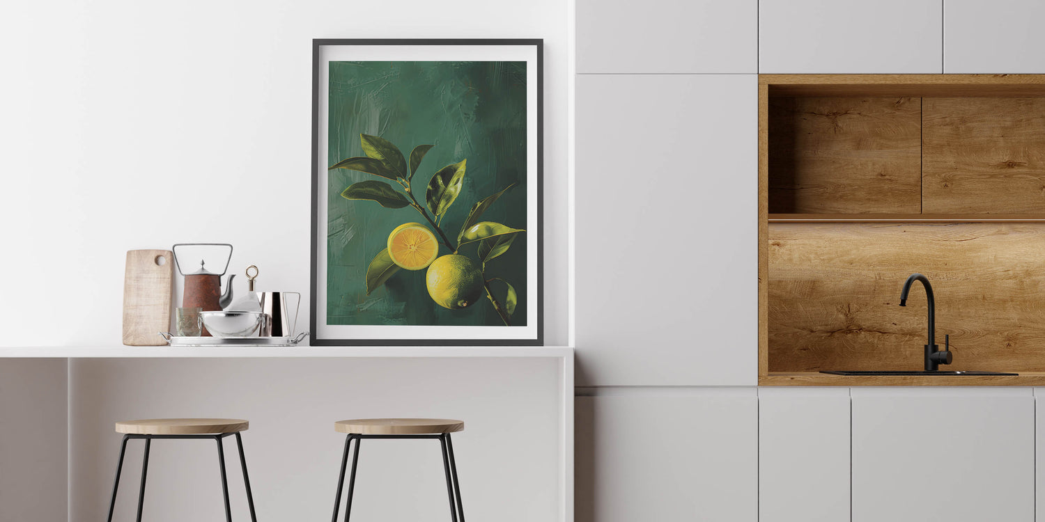 Lemon Tree Wall Art – Vibrant Green & Yellow Kitchen Decor
