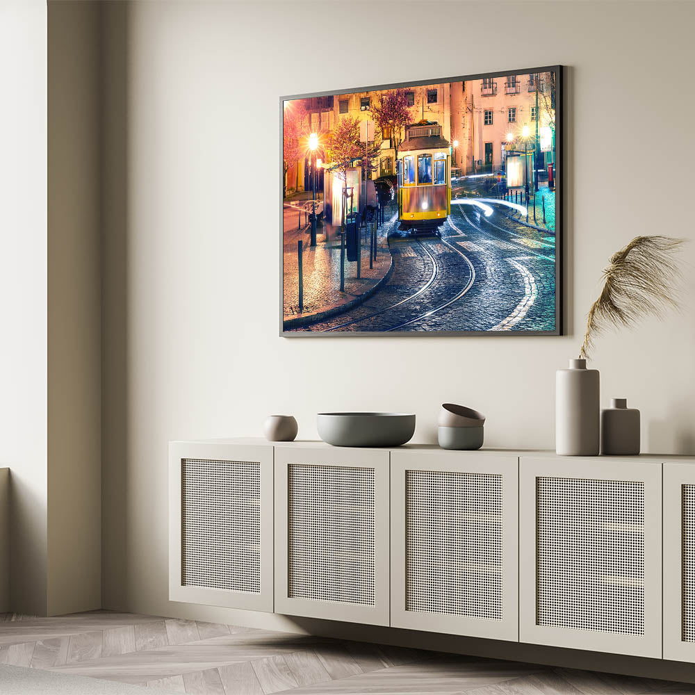 - Design: Features Lisbon’s famous yellow Tram 28 at night, beautifully illuminated by the city’s glowing streetlights.