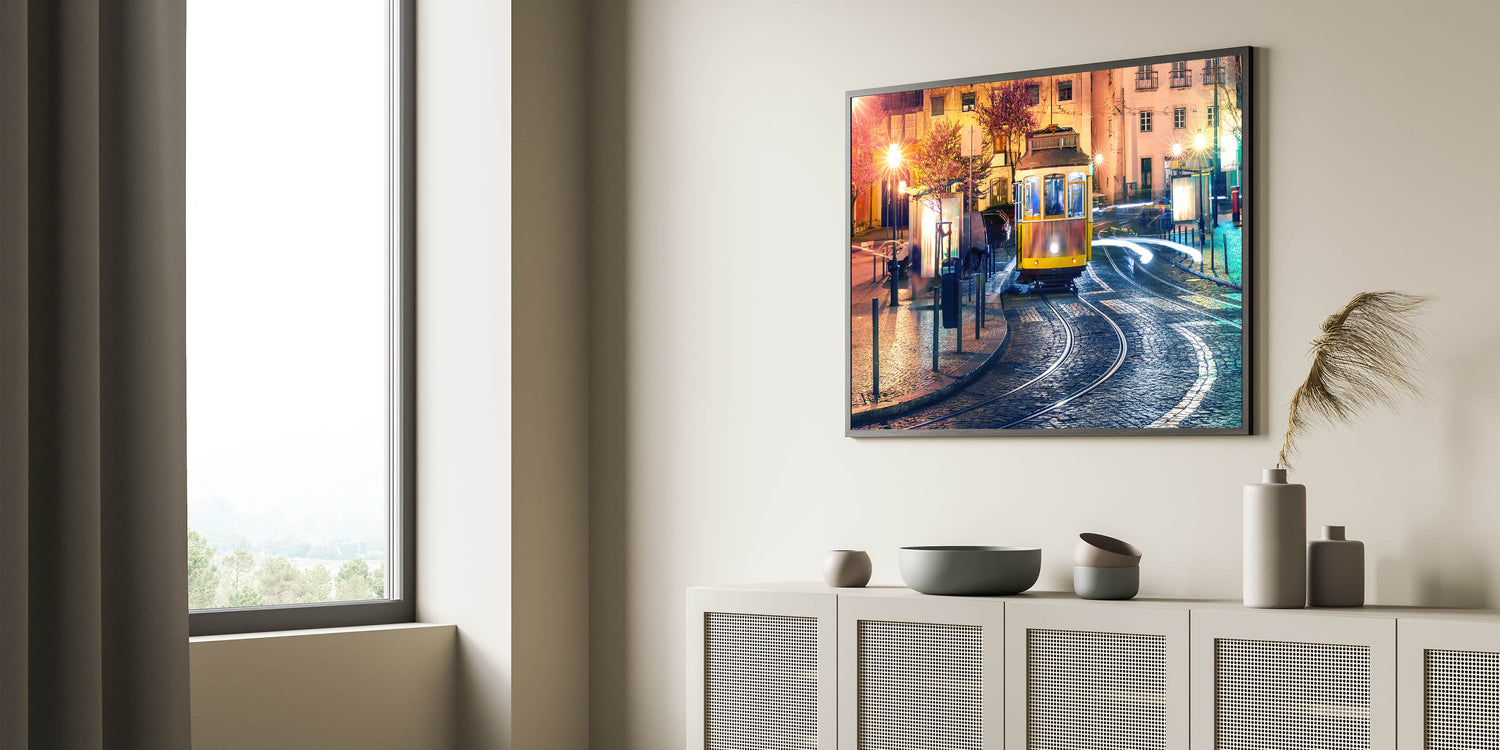 Add a touch of Lisbon's vibrant nightlife to your space with this stunning Lisbon canvas print featuring the iconic Tram 28 making its way through the city’s cobblestone streets at night. The soft glow of streetlights and the blur of movement capture the energy and charm of Lisbon’s historic streets, where old-world charm meets modern vibrancy. This piece is perfect for anyone who loves the unique character of Lisbon’s public transportation and the city’s beautiful streetscape.