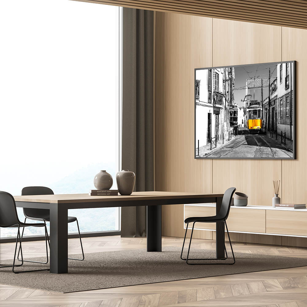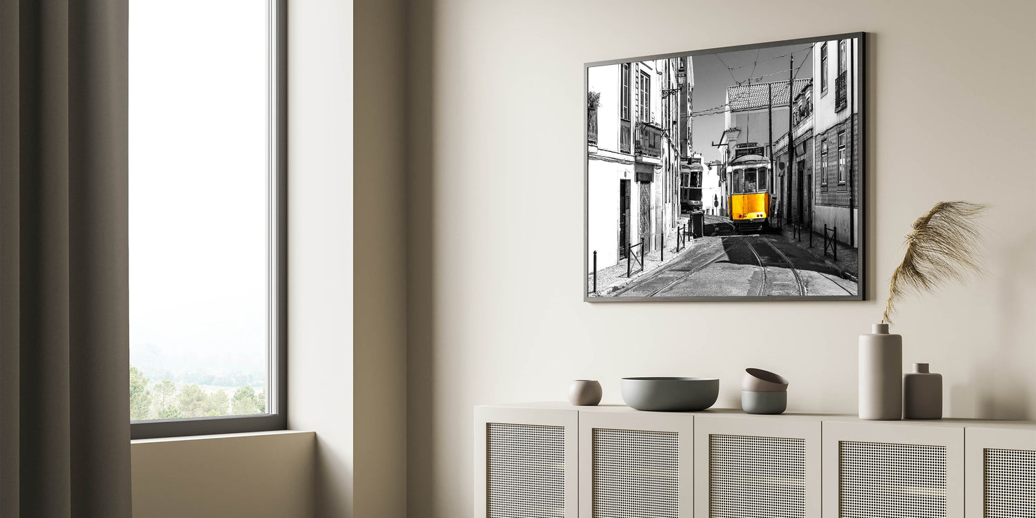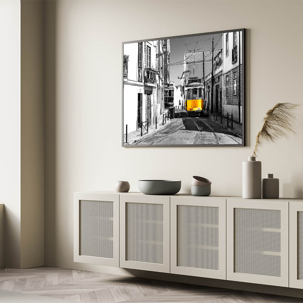Celebrate the timeless charm of Lisbon with this striking Lisbon wall art, featuring the city’s iconic Tram 28 in a unique black-and-white composition with a vibrant yellow accent. This artwork beautifully captures the nostalgic feel of Lisbon’s cobblestone streets and historic architecture, while the bold yellow of the tram creates a stunning focal point. Perfect for those who love a blend of vintage style with a modern artistic touch.