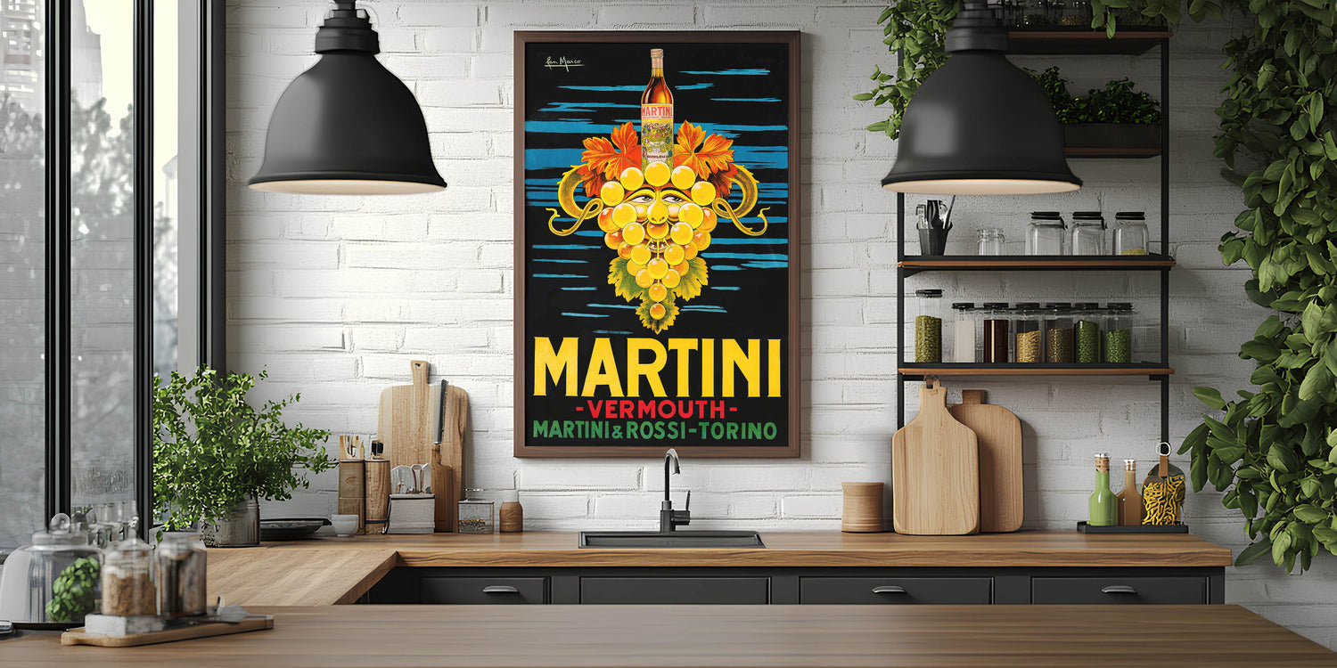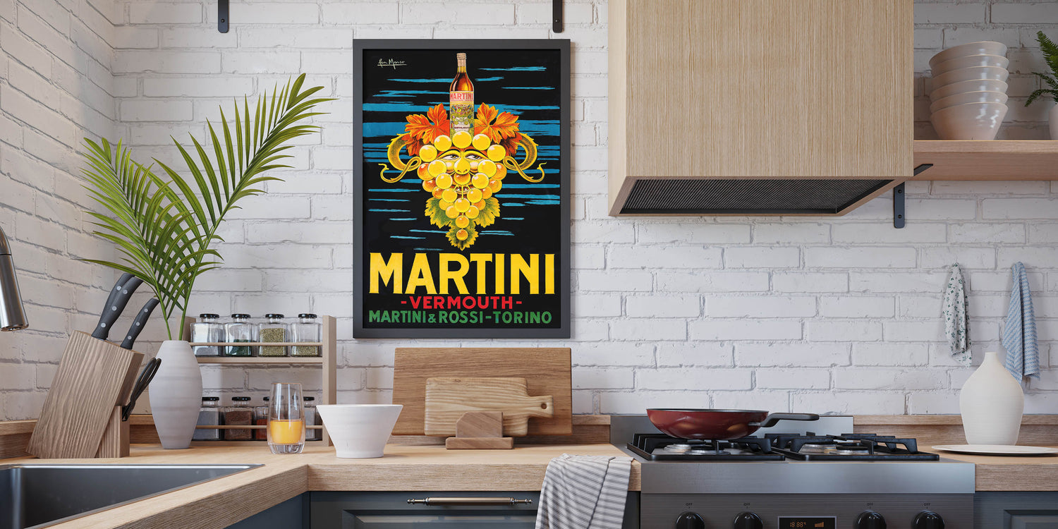 This beverage art decor captures the charm of classic drink advertisements, making it a timeless piece of bar wall art. Whether you're redecorating your cocktail lounge or kitchen, this Martini Vermouth print adds a touch of vintage elegance.