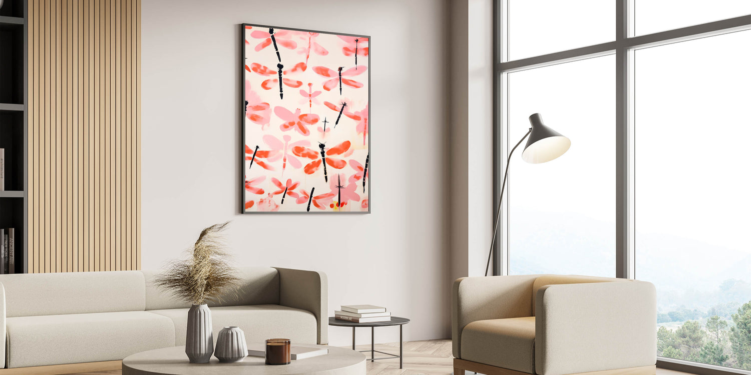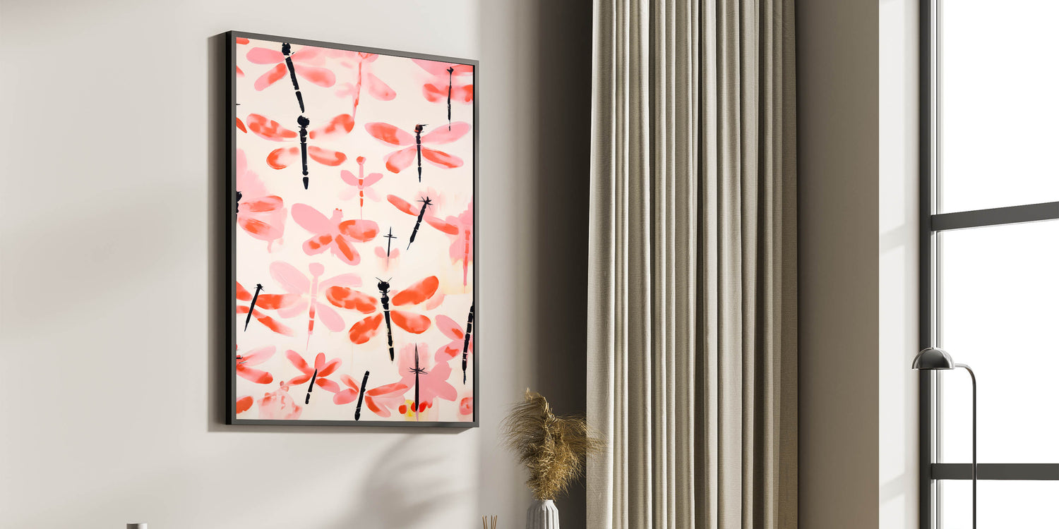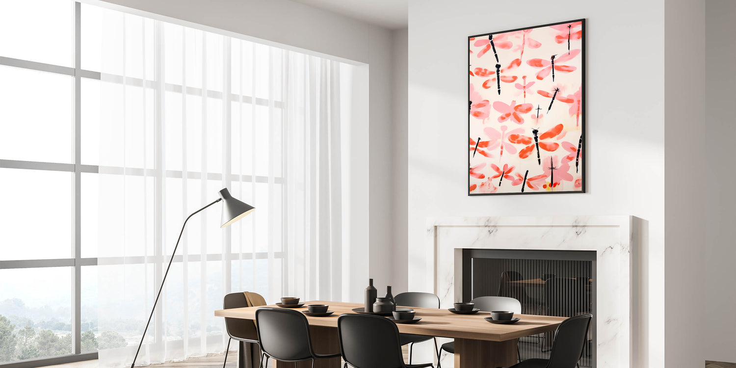 Add a touch of dynamic design to your home with this expressive dragonfly art print, transforming any room into a bold, vibrant environment.
