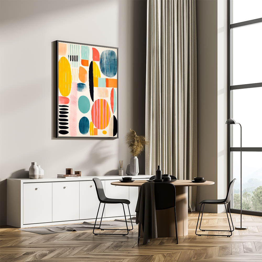 Add a touch of dynamic style to your space with this Maximalist Wall Art piece, featuring bold colors and eclectic patterns that embody the essence of vibrant maximalism. Perfect for making a statement, this artwork blends expressive shapes and striking colors, such as bright yellow, teal, coral, and black, to create a visually engaging composition. It’s an ideal choice for those who appreciate unique, vibrant styles and want to infuse their space with personality.
