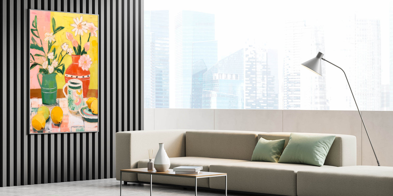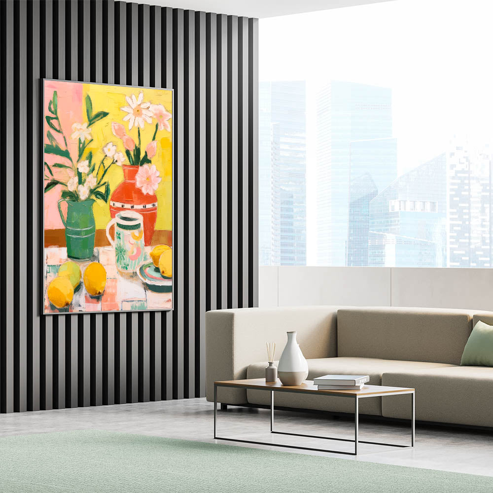 Maximalist Wall Art - Bold Floral and Lemon Still Life - Vibrant Decor