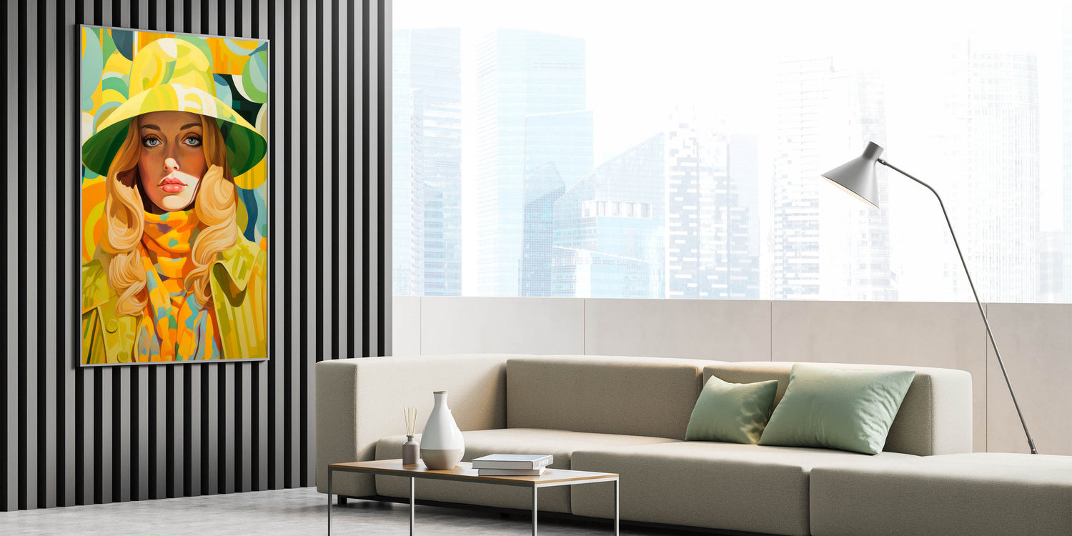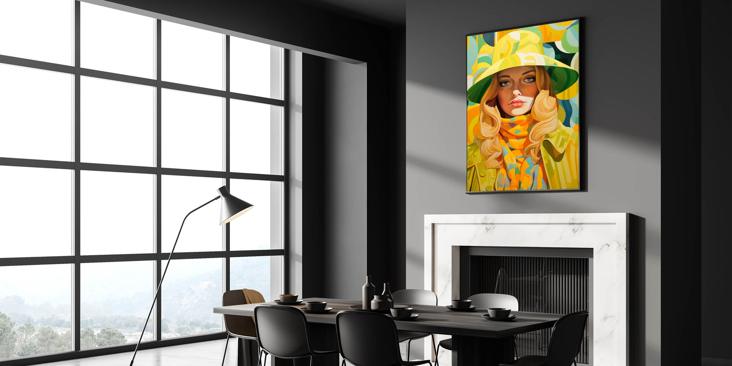 Maximalist Wall Art - Bold Retro Portrait with Vibrant Yellow Accents