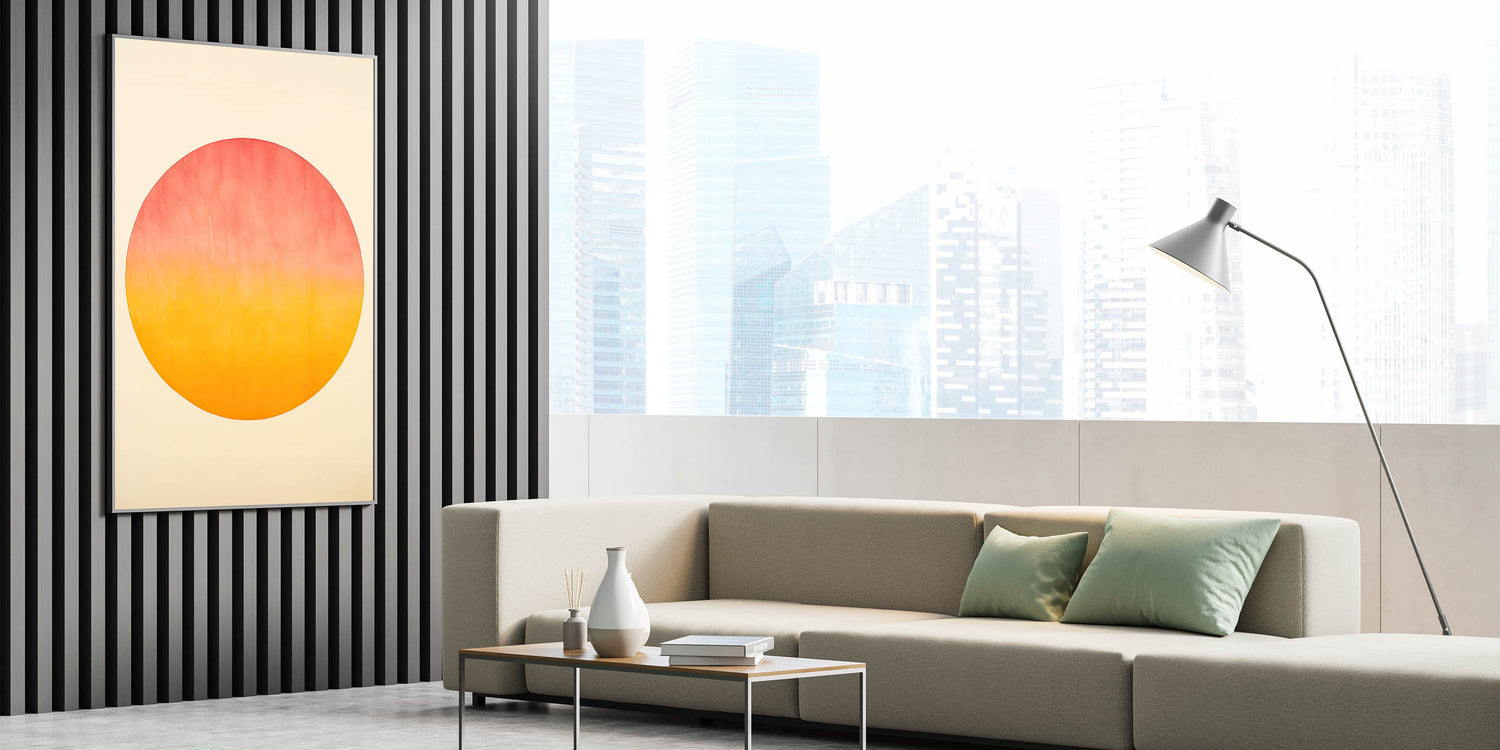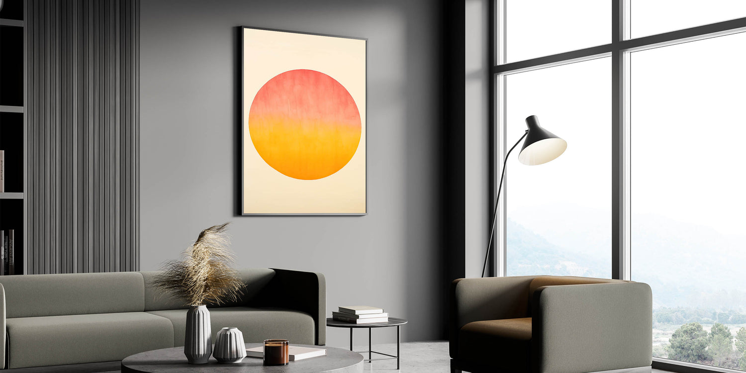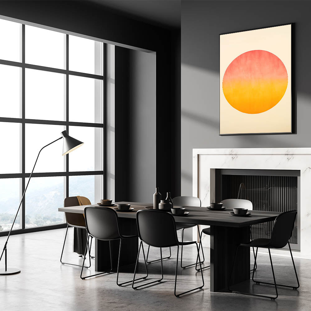 Bring the warmth and glow of a sunset into your home with this striking minimalist circle artwork, offering both a modern and timeless appeal.