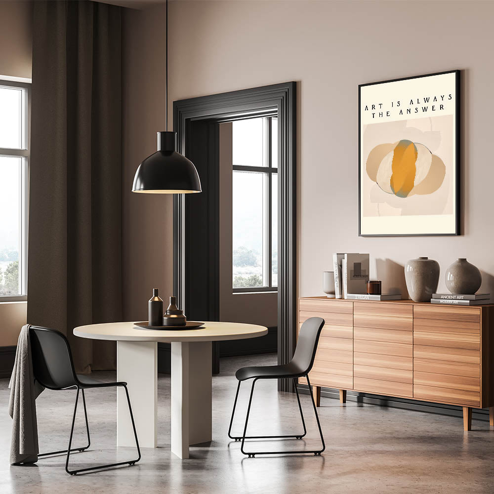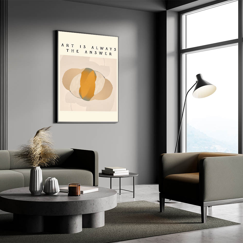 Inspire and transform your space with this modern minimalist wall art from The Garden Collection, featuring a powerful motivational quote, "Art is Always the Answer." The abstract design, combined with neutral tones and warm accents, creates a perfect blend of elegance and simplicity. This piece serves as both an aesthetic addition and a daily reminder of the importance of creativity and inspiration in your life.