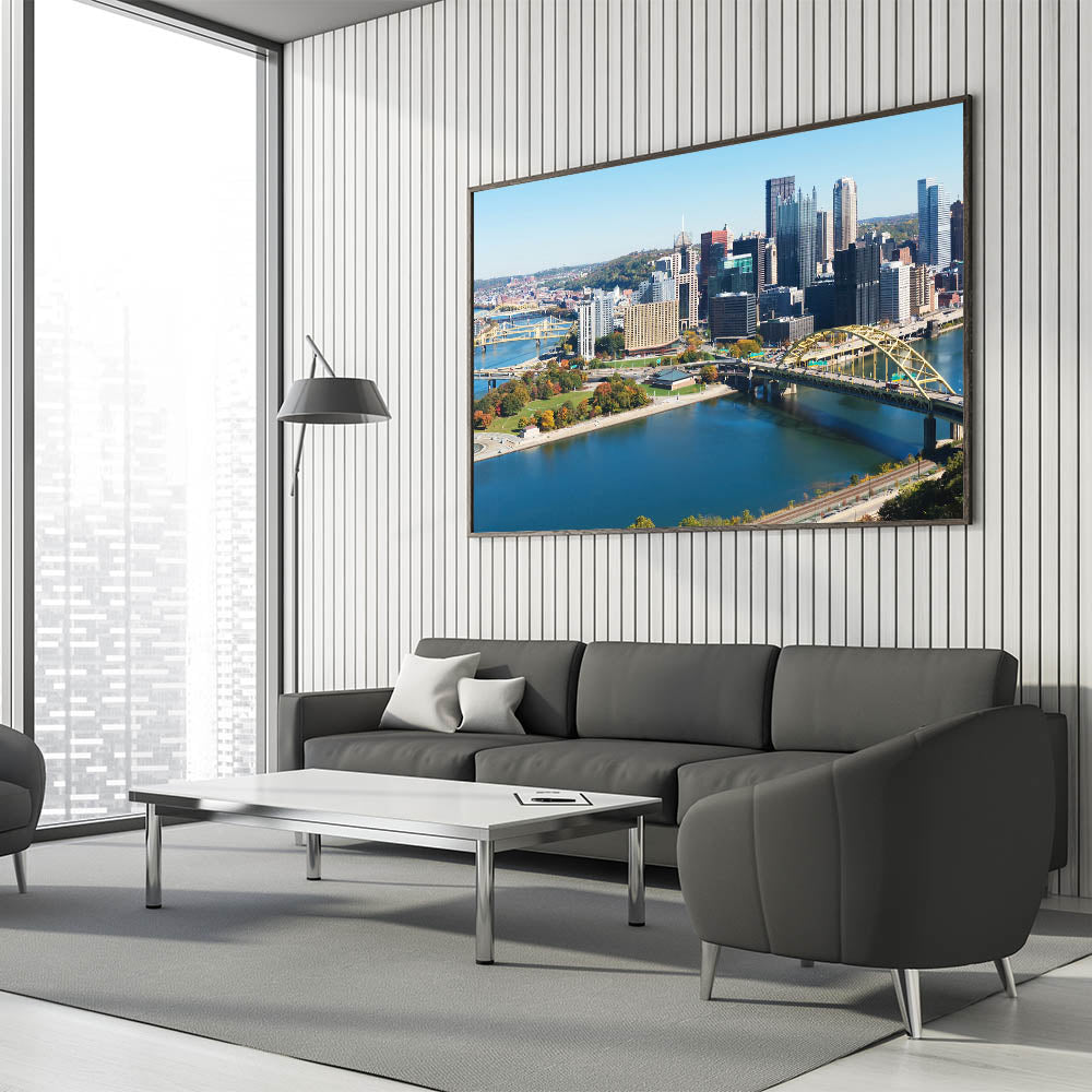 Modern Pittsburgh Cityscape Art – Scenic View of Skyline and Rivers