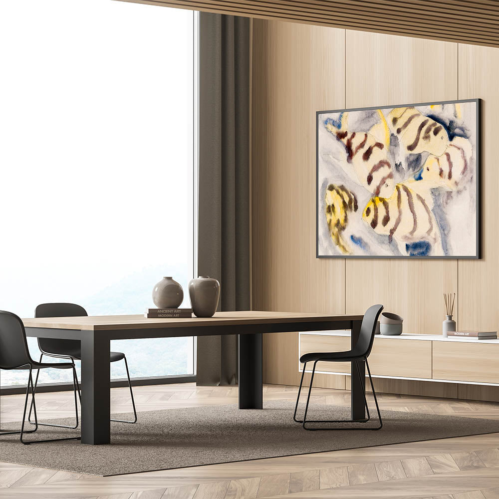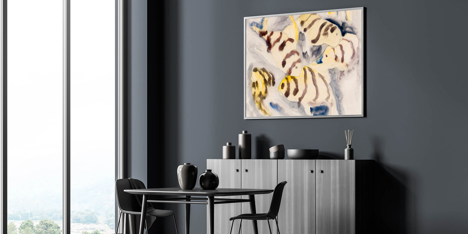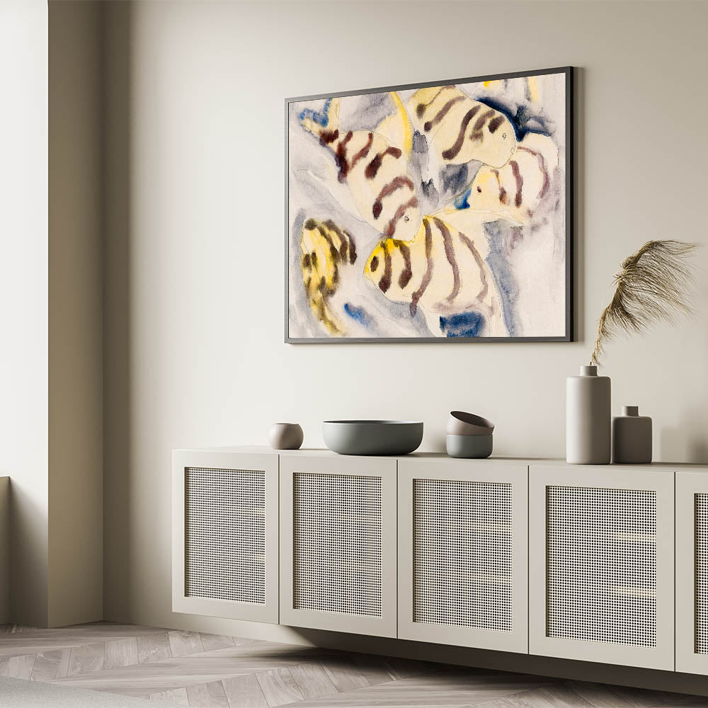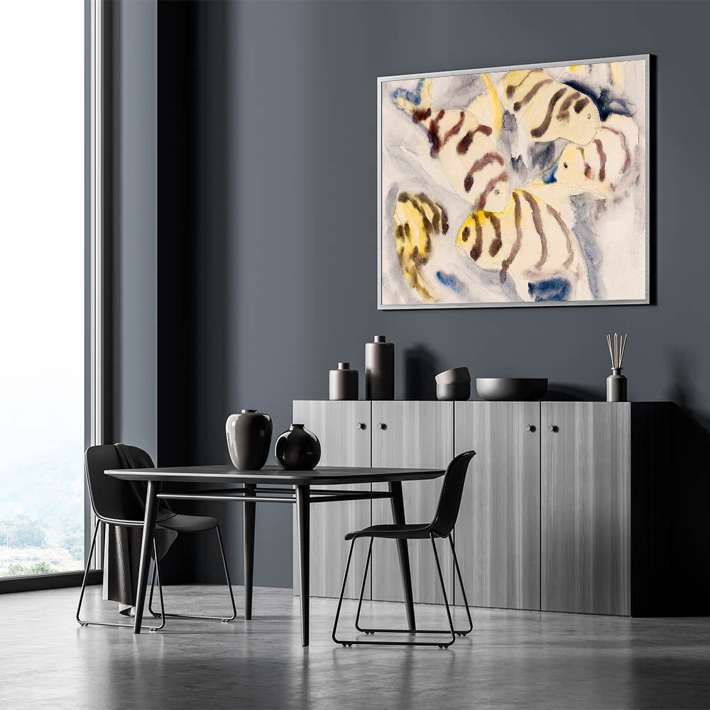 Elevate your decor with this stunning Modern Wall Art piece, inspired by Charles Demuth’s Fish Series, No. 3 (1917). This artwork blends delicate watercolor strokes with abstract modern design, showcasing a harmonious arrangement of fish in muted tones. Its minimalist charm and soft palette make it an elegant addition to any contemporary or nature-inspired interior.