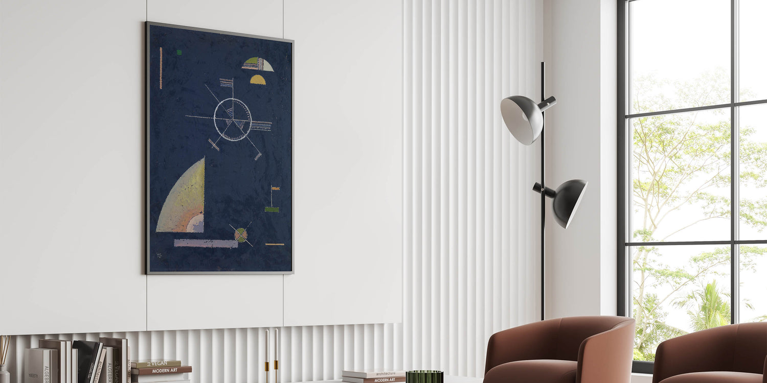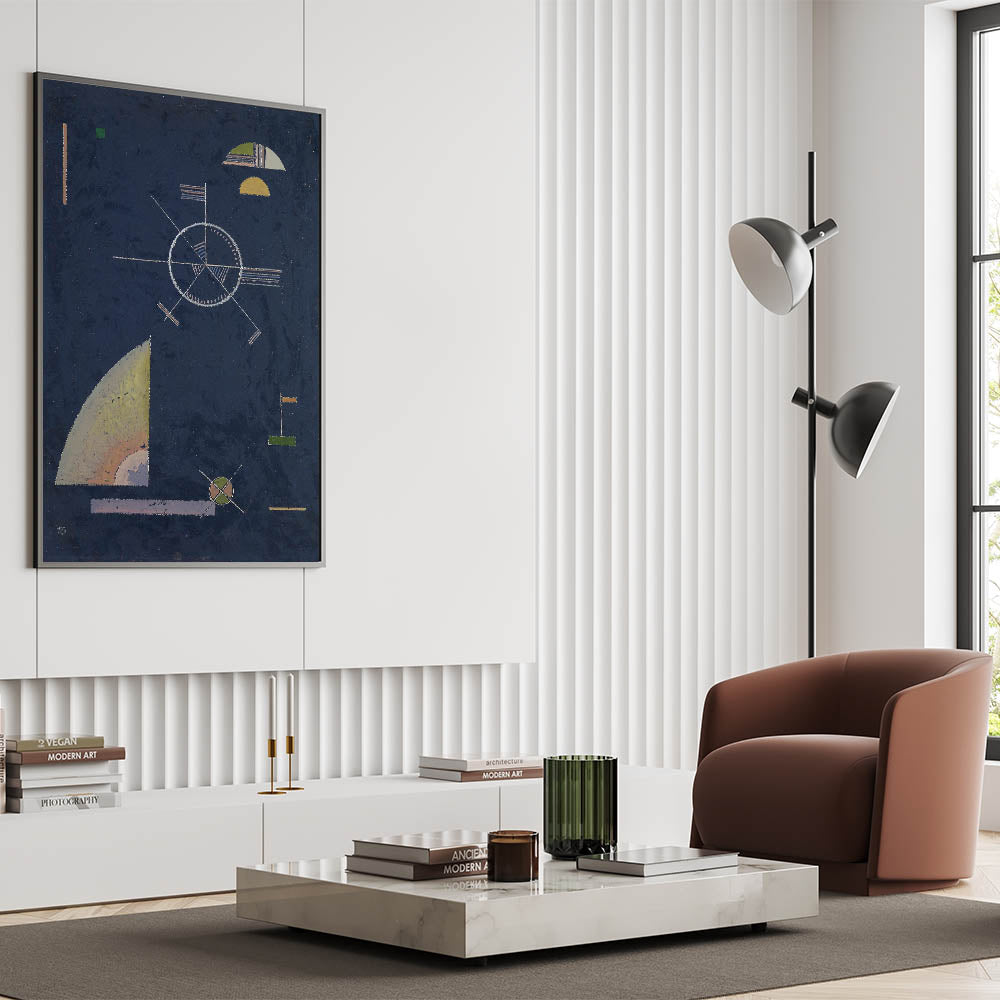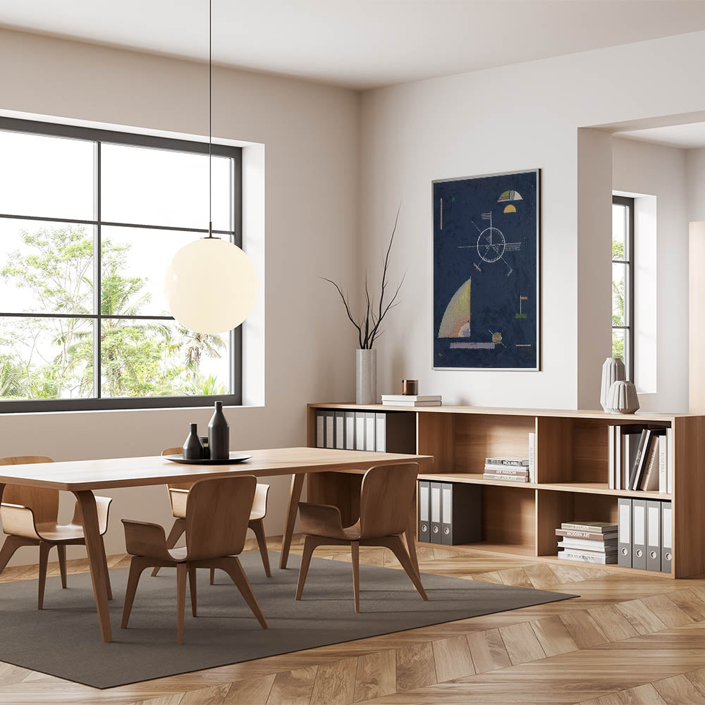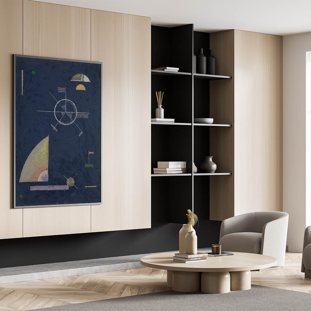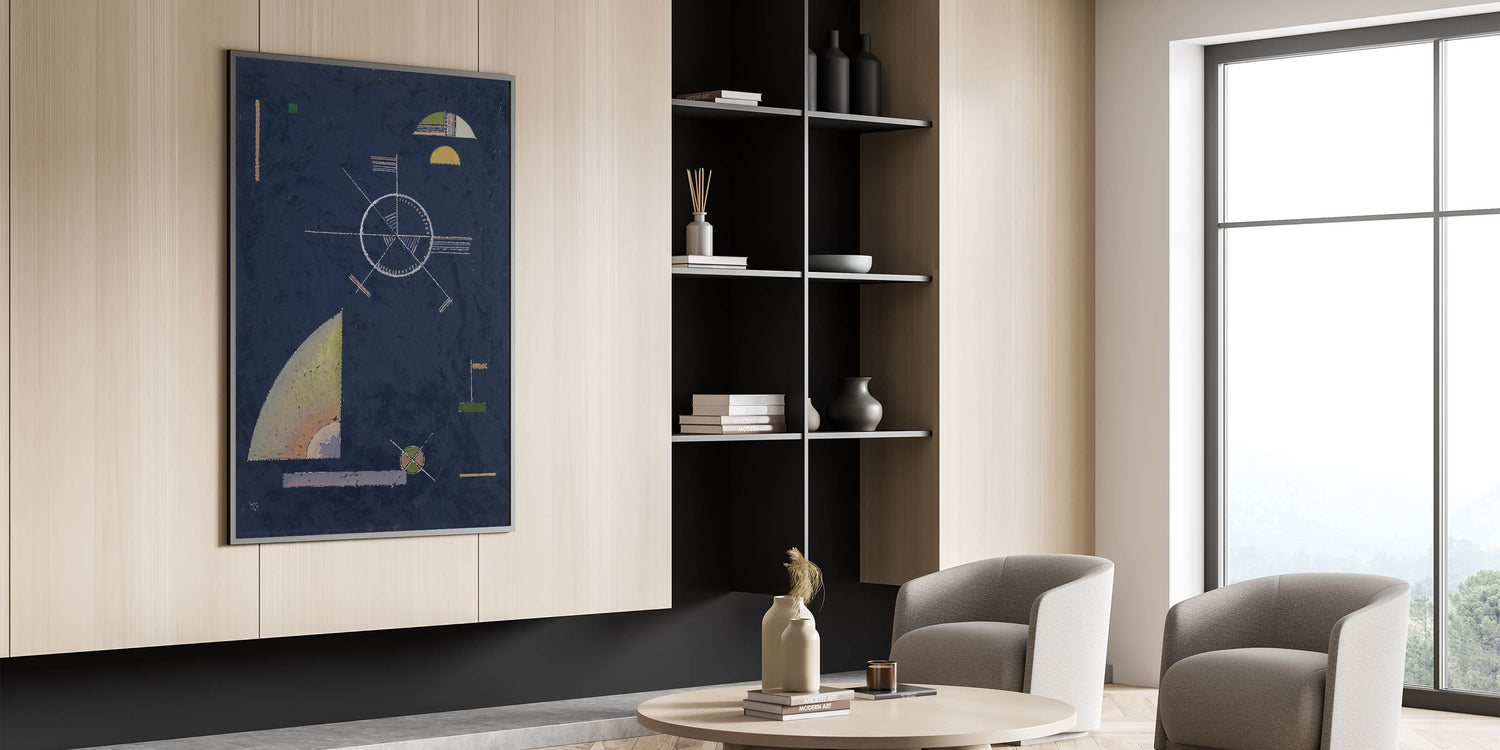 Infuse your space with the dynamic energy of geometric abstraction with this masterpiece by Wassily Kandinsky. Titled "Dull Gray", this artwork features intricate geometric forms and a harmonious interplay of navy blue, muted yellows, and greens. A true representation of Modern Wall Art and Contemporary Art, this piece is perfect for anyone looking to add sophistication and creativity to their decor.