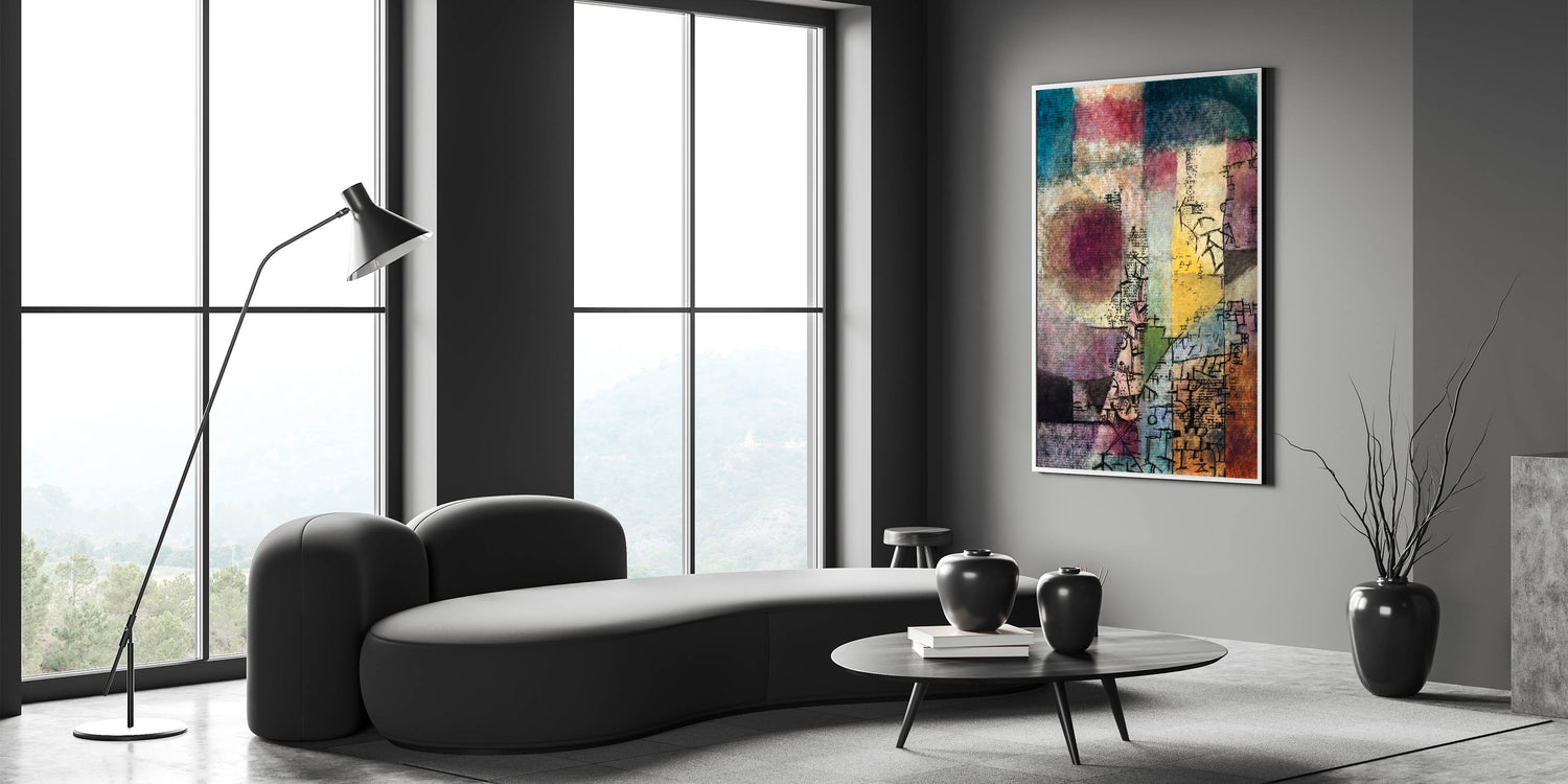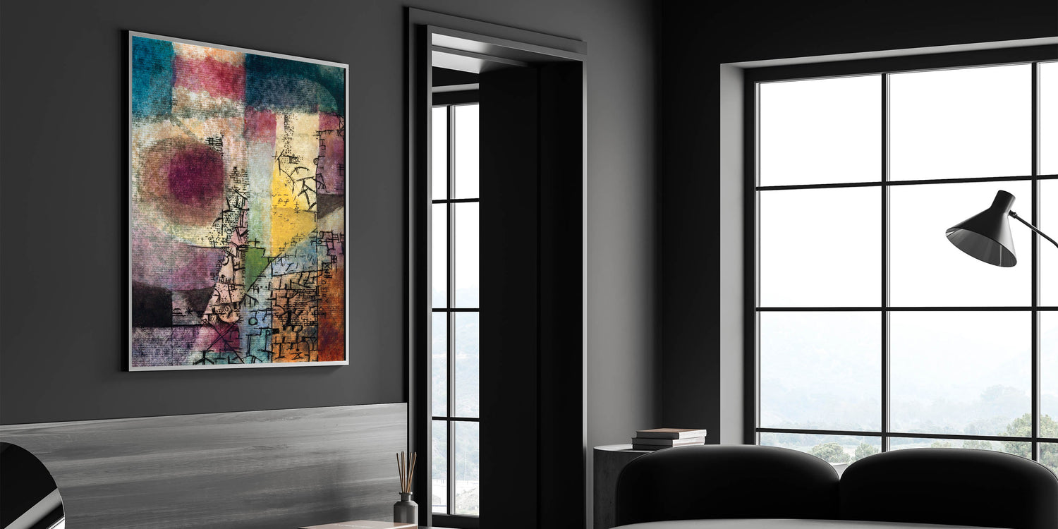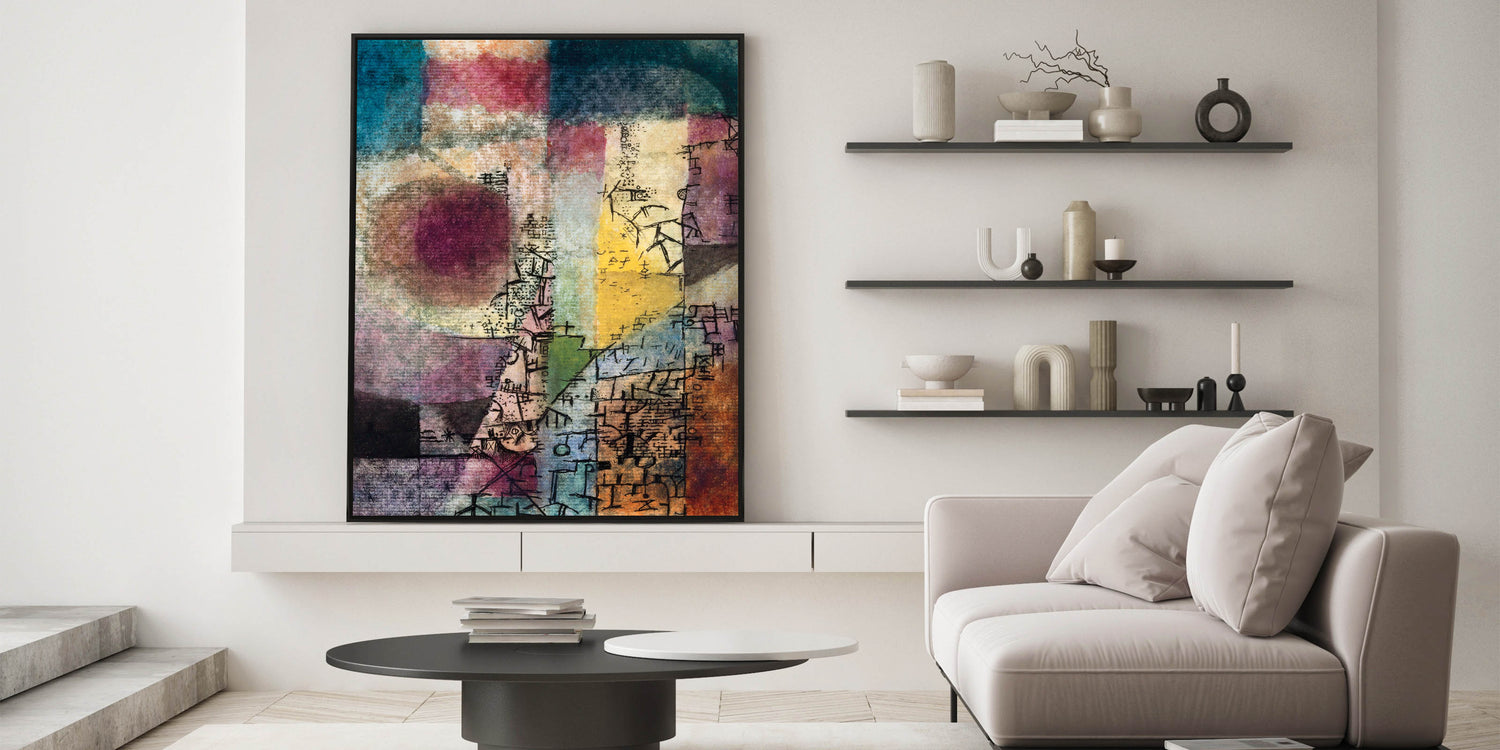 This captivating piece of modern wall art features Paul Klee’s unique abstract style, combining vibrant colors and intricate symbols. Created in 1914, this artwork blends rich tones with complex patterns, inviting viewers to explore its layers of meaning. Klee’s use of geometric forms and mysterious symbols brings a dynamic, thought-provoking quality to any contemporary space, making it perfect for those who appreciate abstract modern decor.