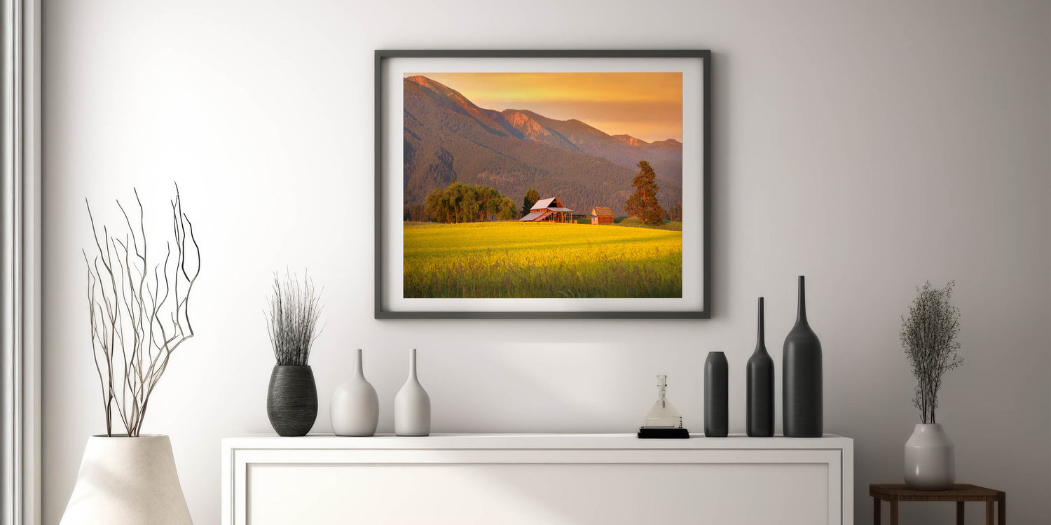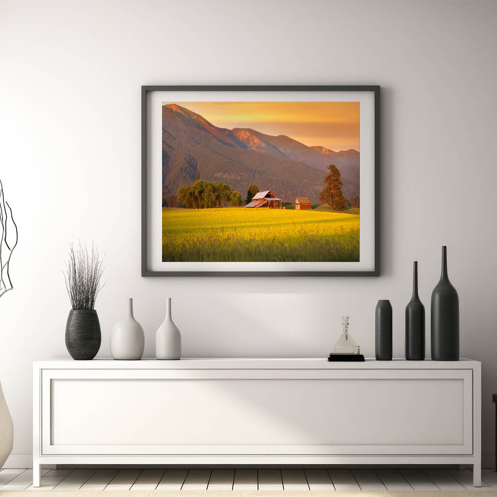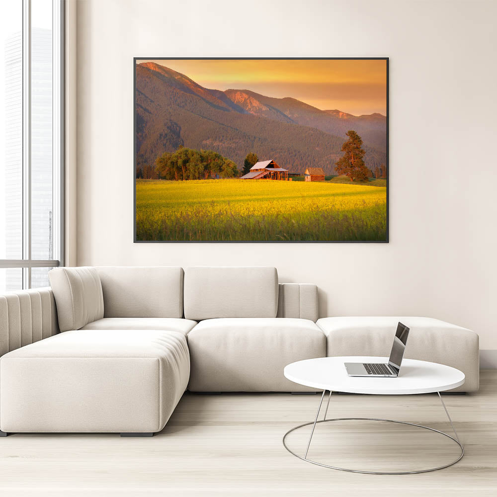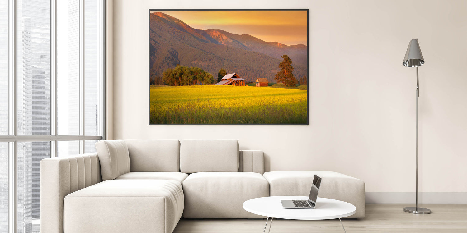 - Stunning Montana canvas prints showcasing rural barns and mountain ranges