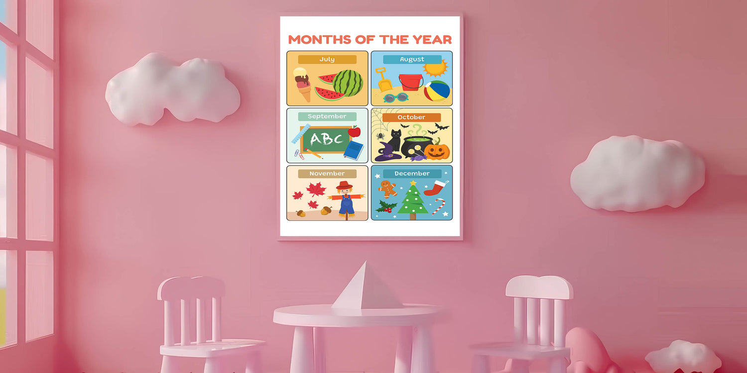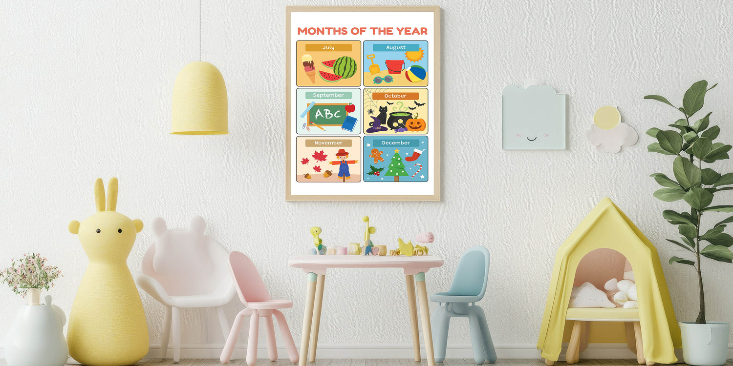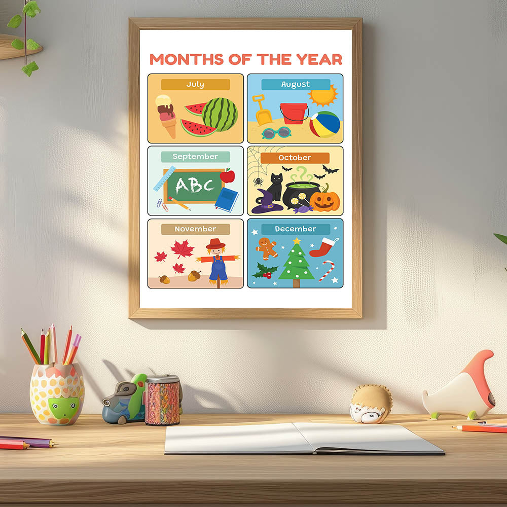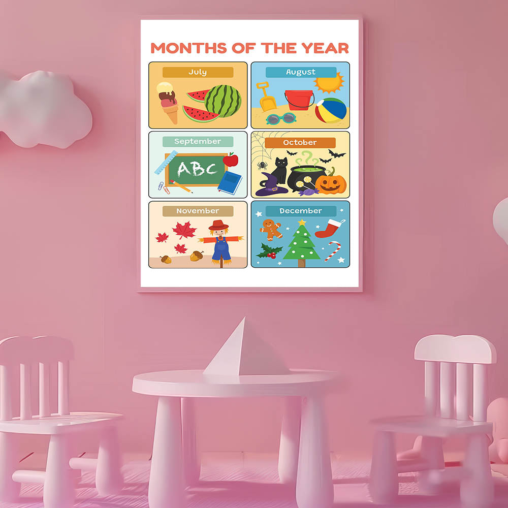 Months of the Year Learning Wall Art - Kids Educational Poster