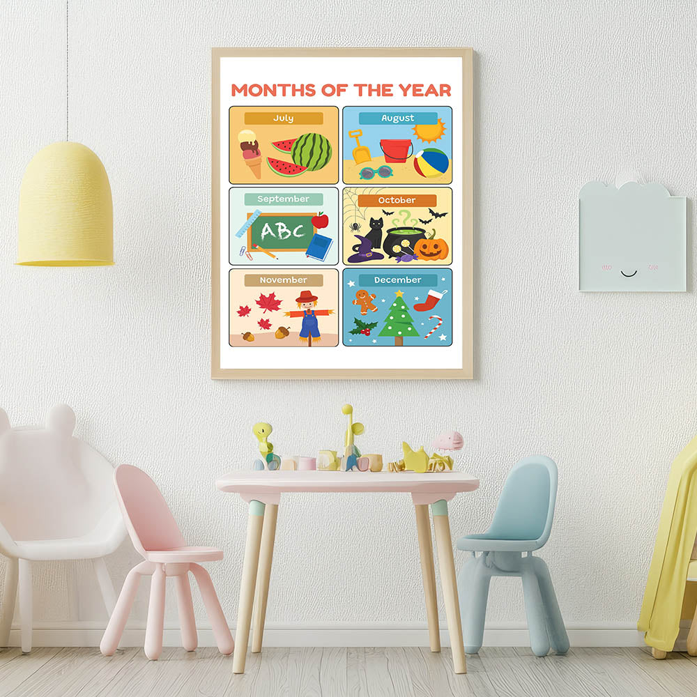Turn any space into a fun and engaging learning environment with this Months of the Year Wall Art. Whether for a classroom or a child’s bedroom, this Educational Kids’ Wall Poster is a great tool for learning.