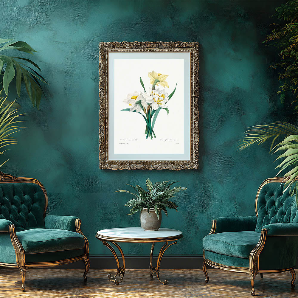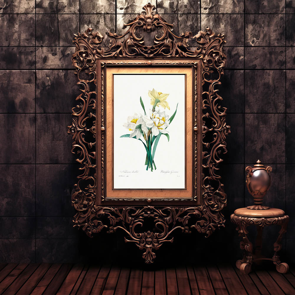 Neoclassical Art Print: Double Daffodil by Redouté - Botanical Wall Decor