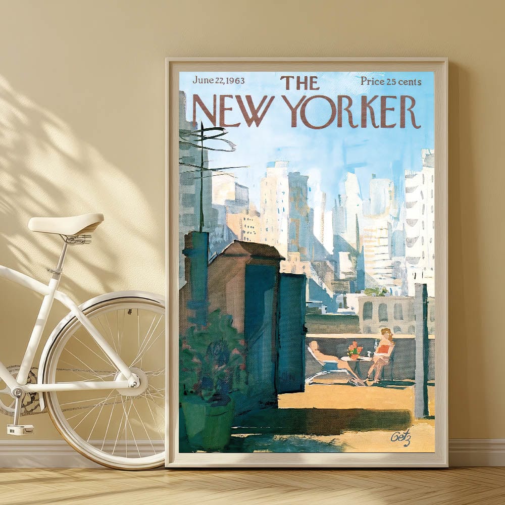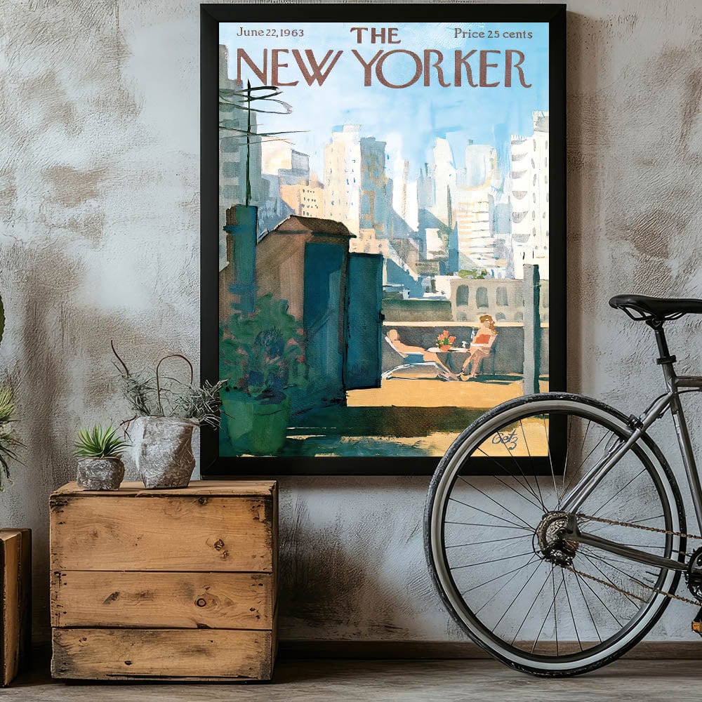 New Yorker Poster - 1963 Rooftop Summer Scene with City View Art
