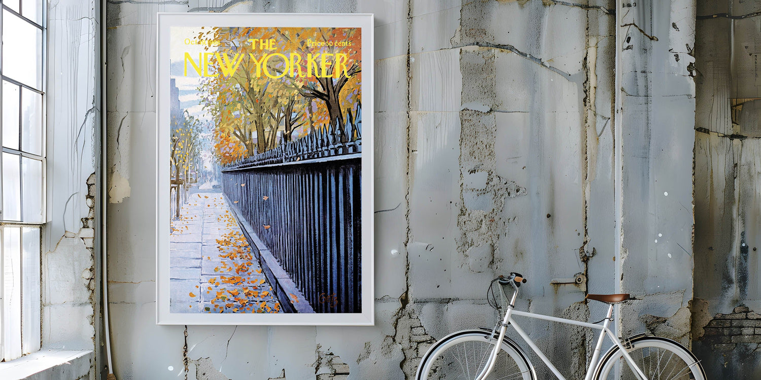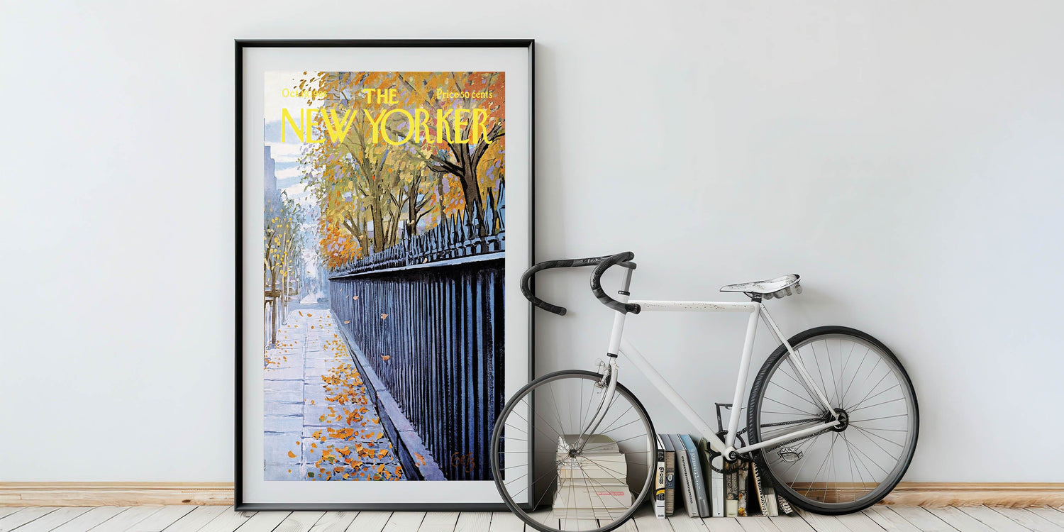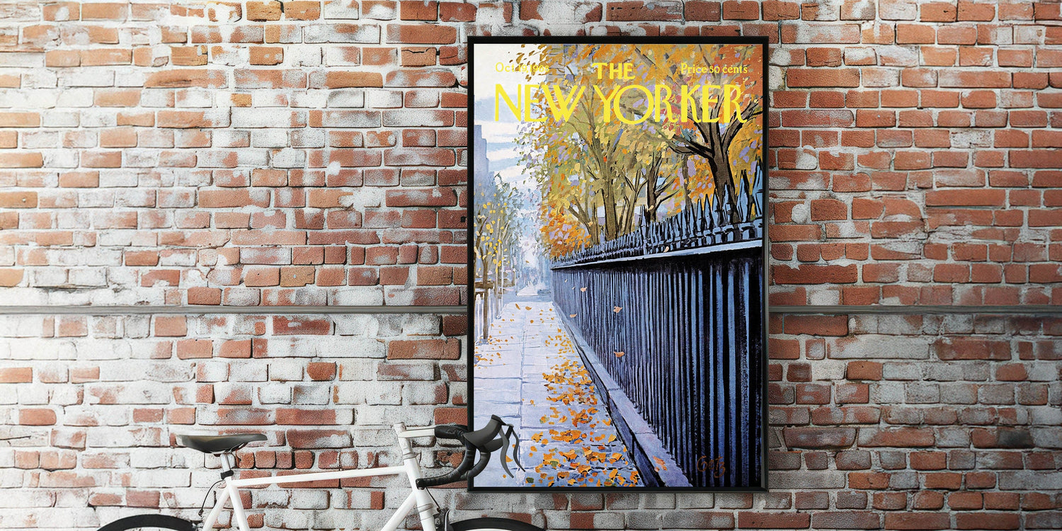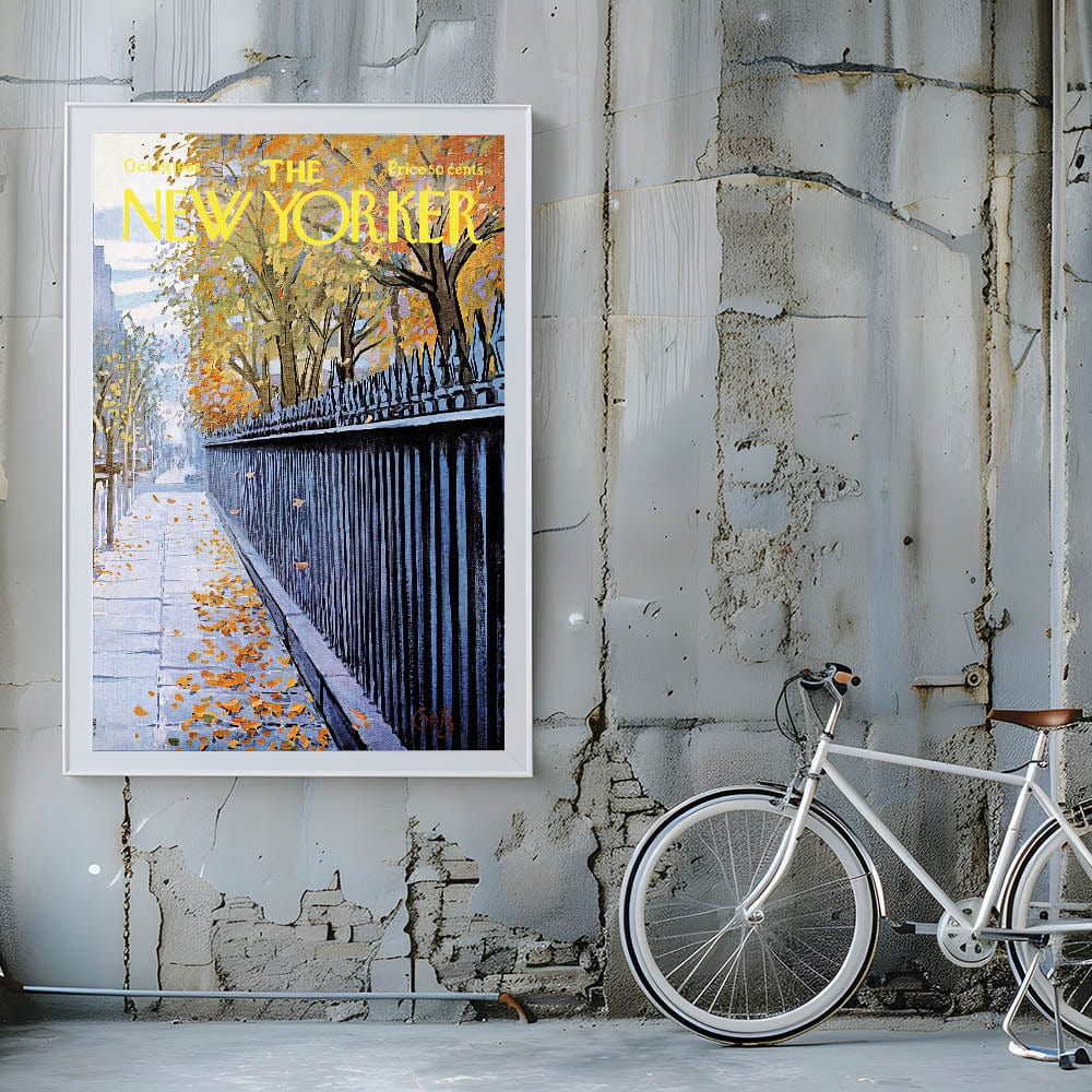 This New Yorker cover reproduction captures the beauty of fall in the city, making it a perfect piece for any lover of New York's urban landscape. Whether you appreciate New Yorker cartoons prints or simply love nature-inspired art, this piece will bring warmth and character to your living room or office.