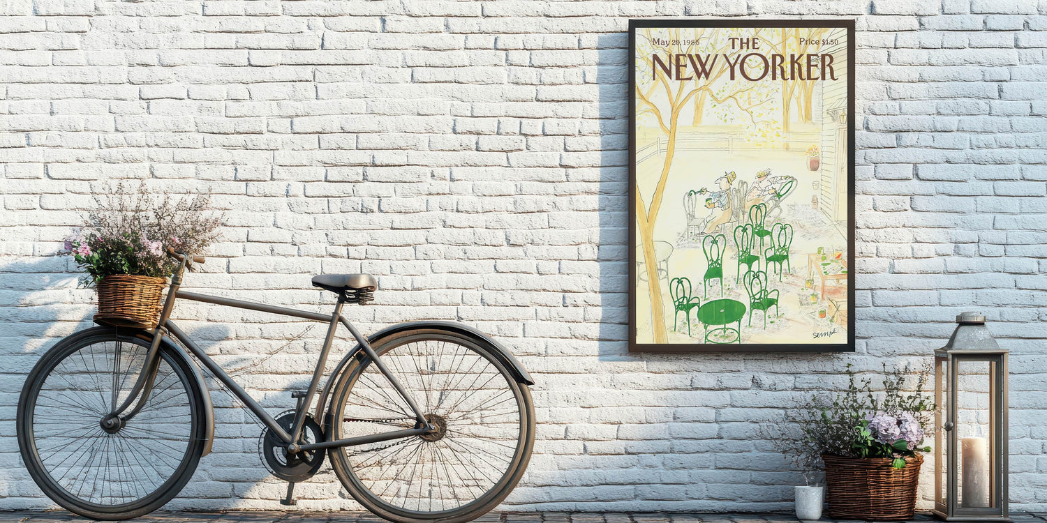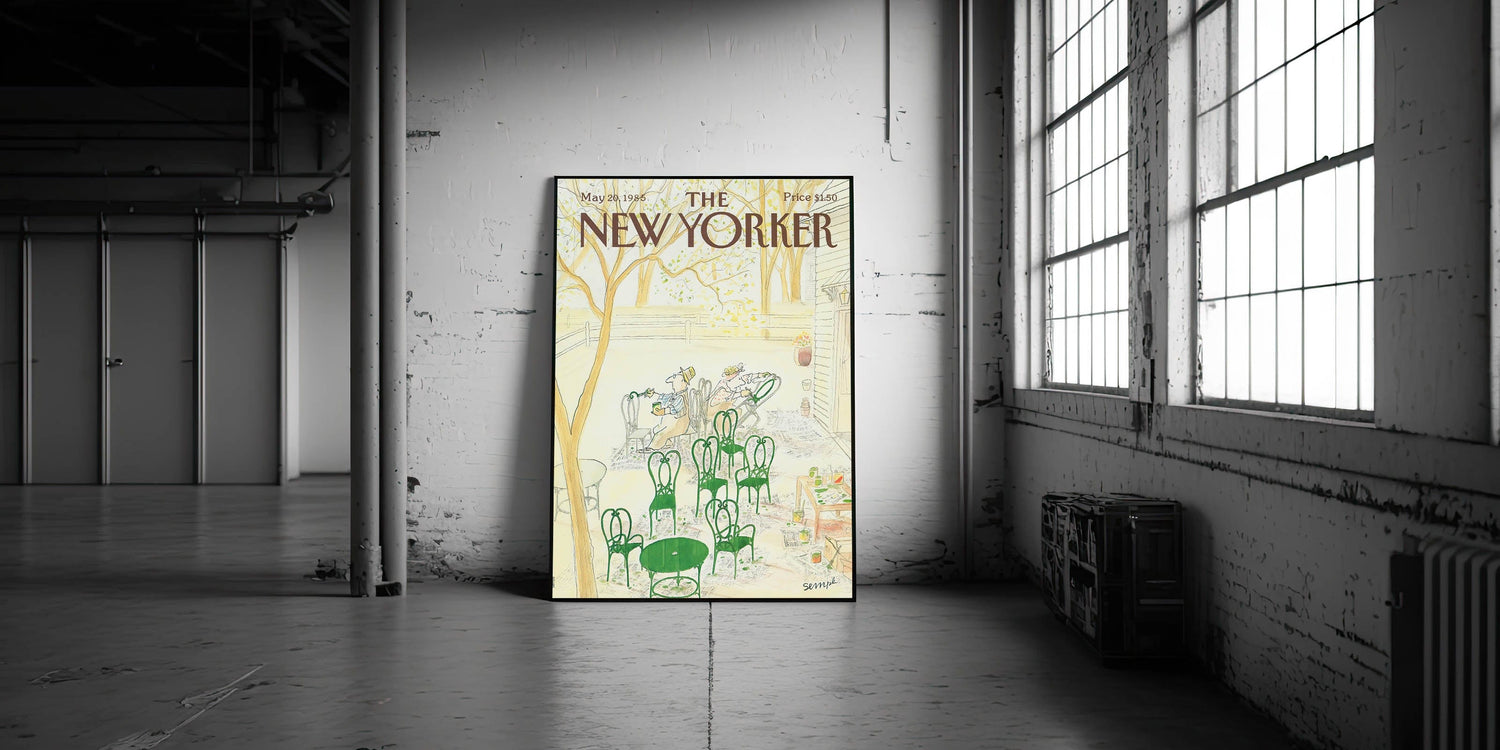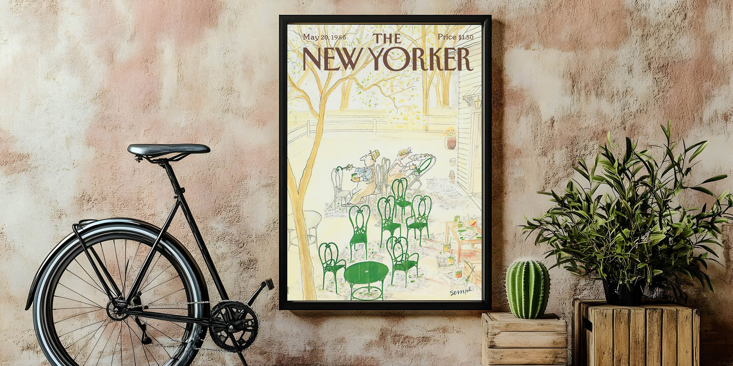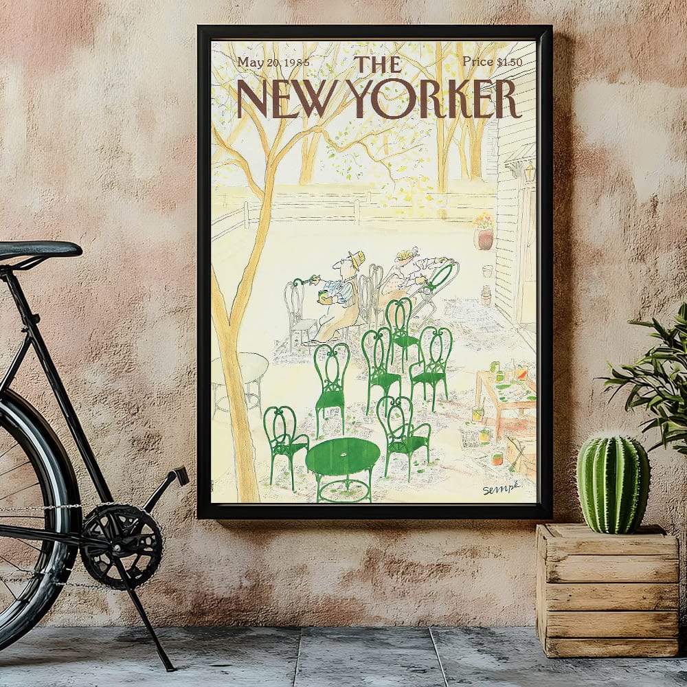 New Yorker Poster - 1985 Green Chairs and Garden Scene Illustration