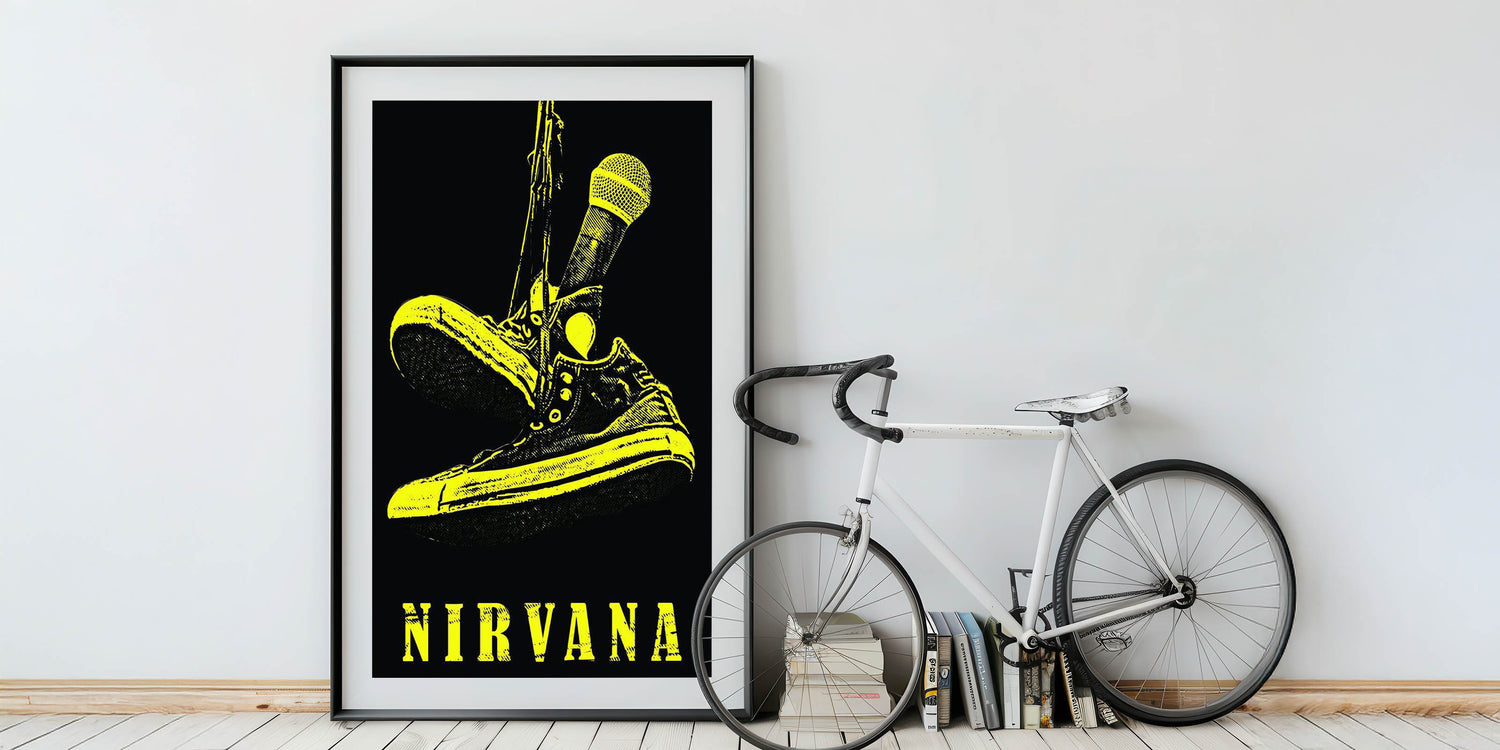 - High-quality print of the iconic Nirvana shoes and microphone design