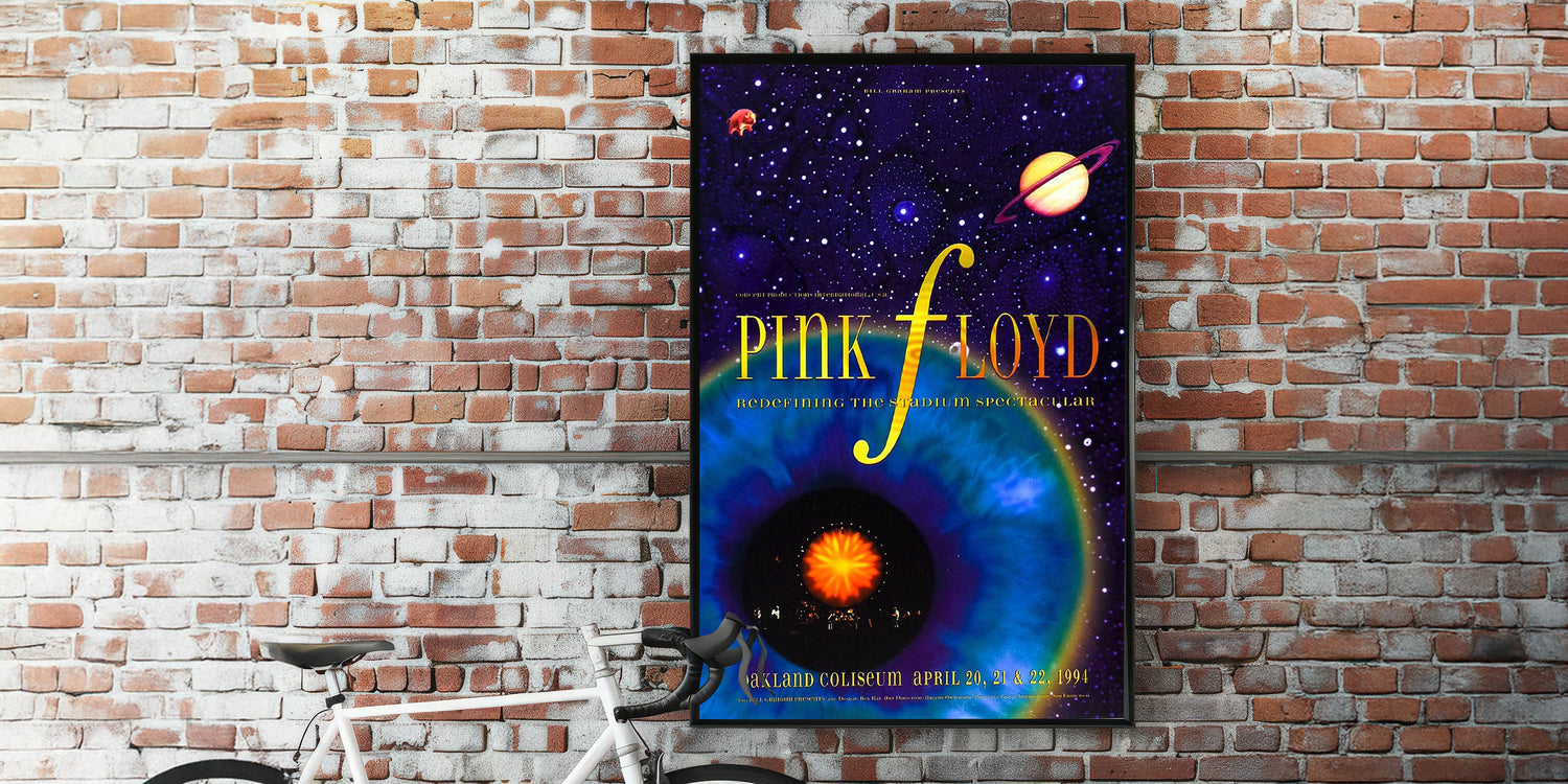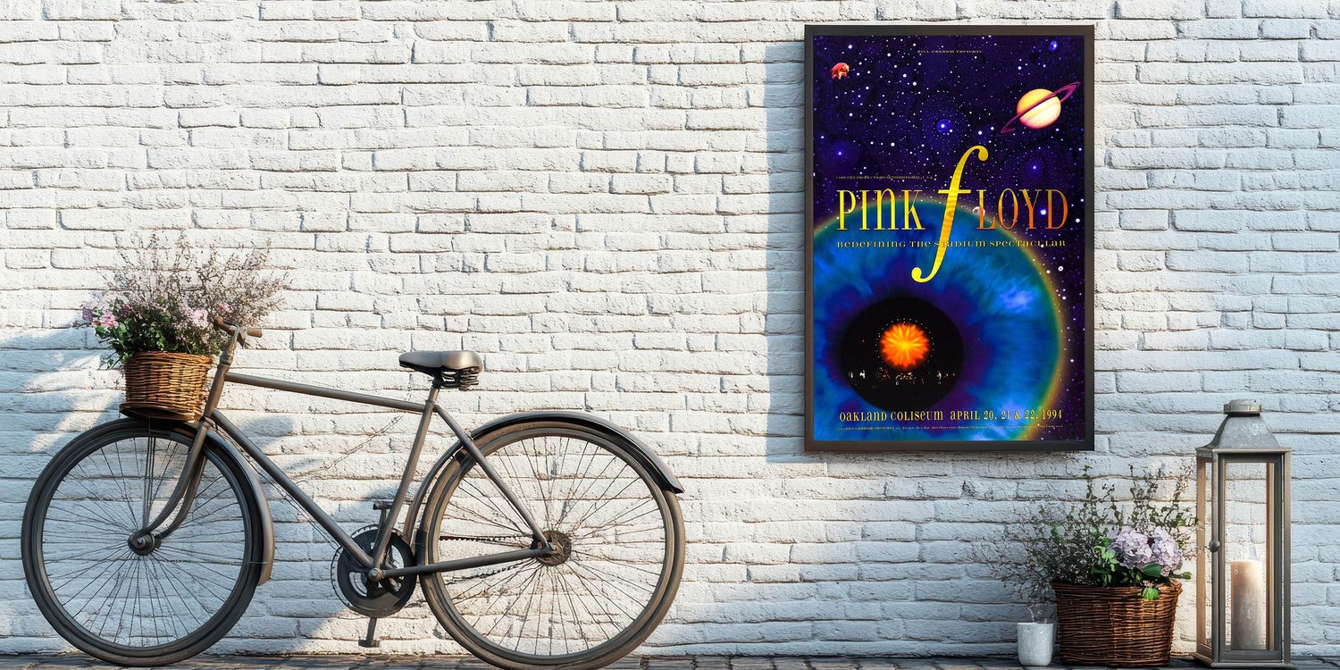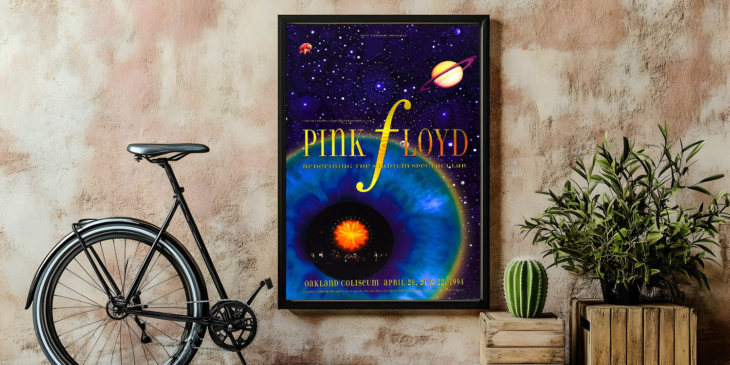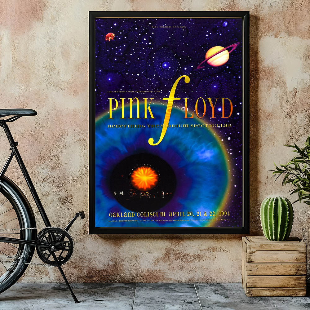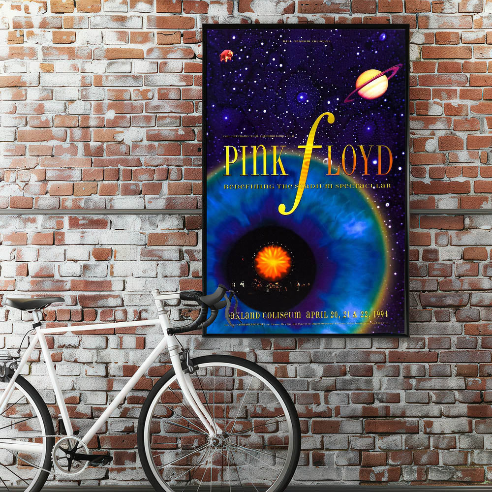 - A high-quality concert poster from Pink Floyd’s 1994 performance at the Oakland Coliseum.