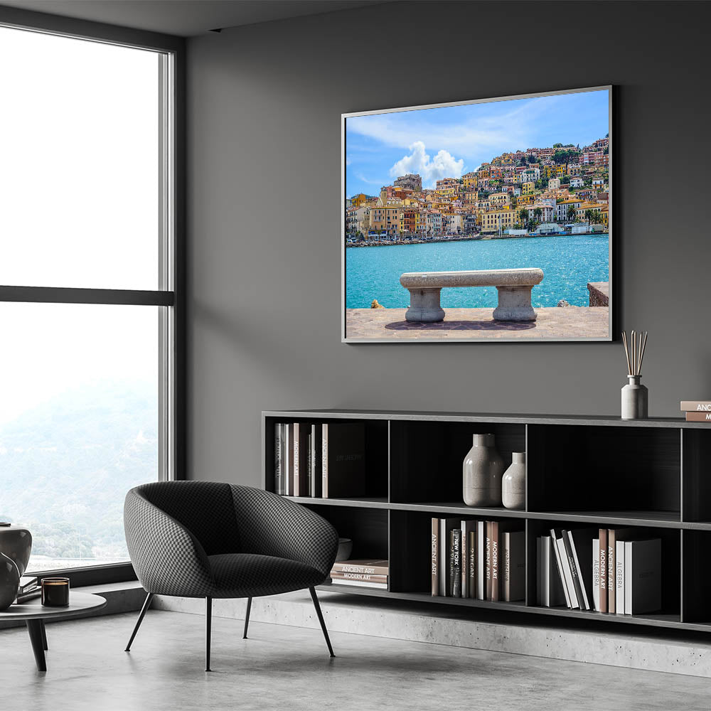 Transform your space with this colorful Porto Canvas Art showcasing a vibrant view of Porto's iconic hillside buildings overlooking the water. This beautiful Porto wall decor adds a touch of Portuguese charm to any room, capturing the lively atmosphere of the city’s waterfront.