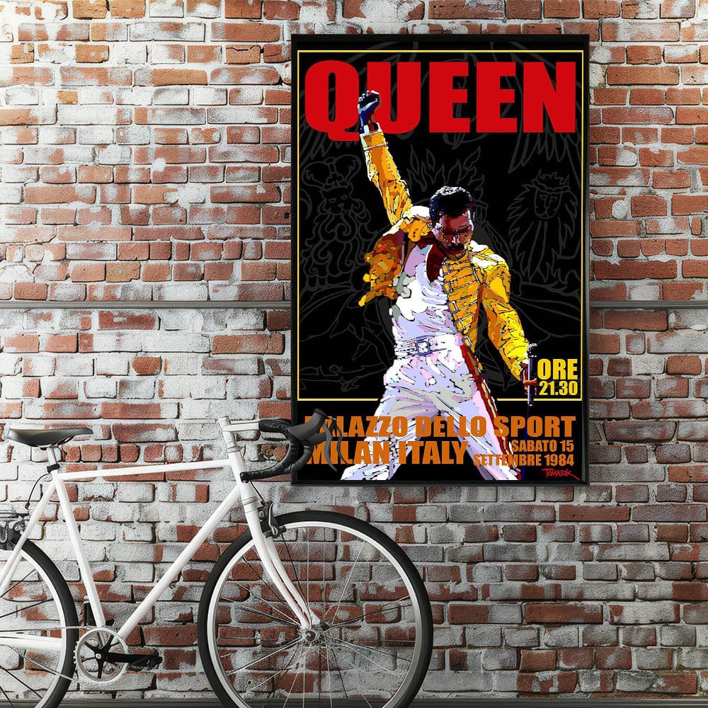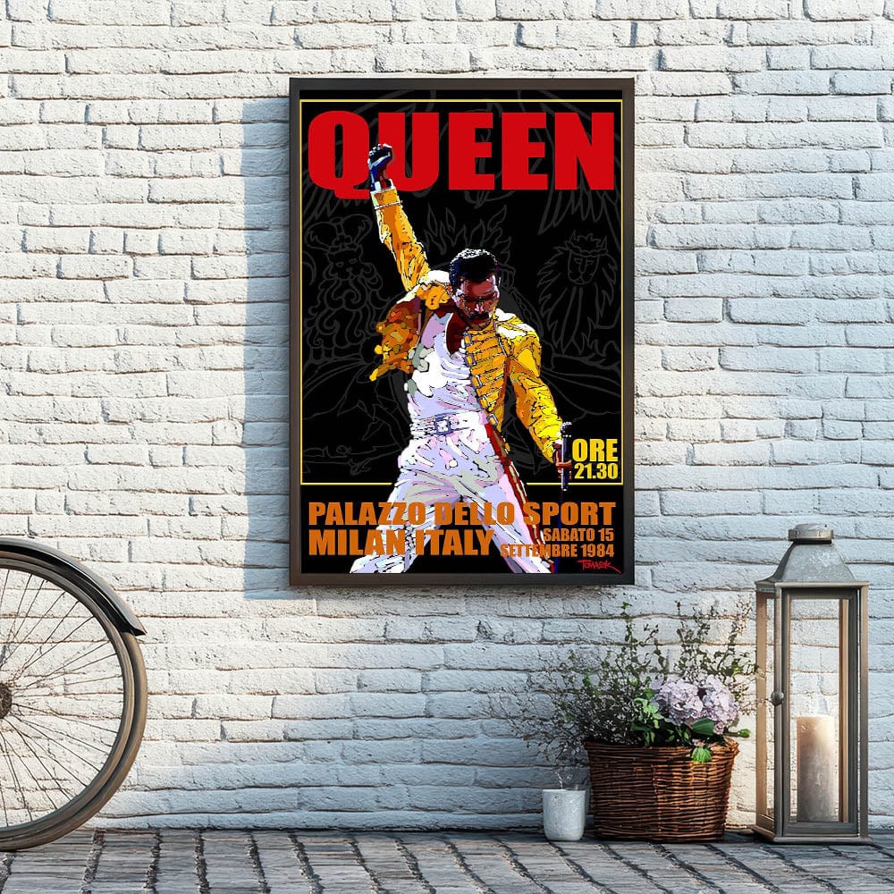 - Vintage 1984 Queen concert poster for their performance at the Palazzo Dello Sport in Milan, Italy.