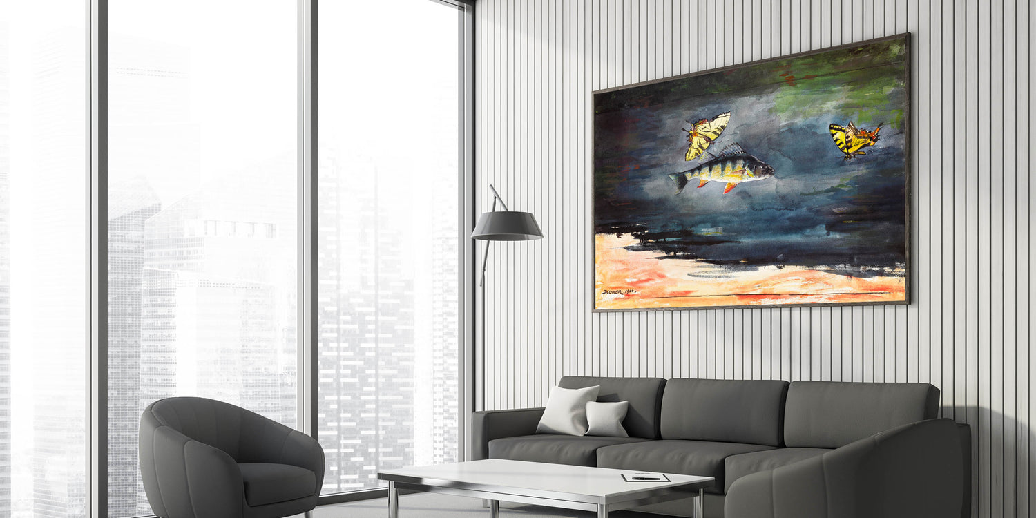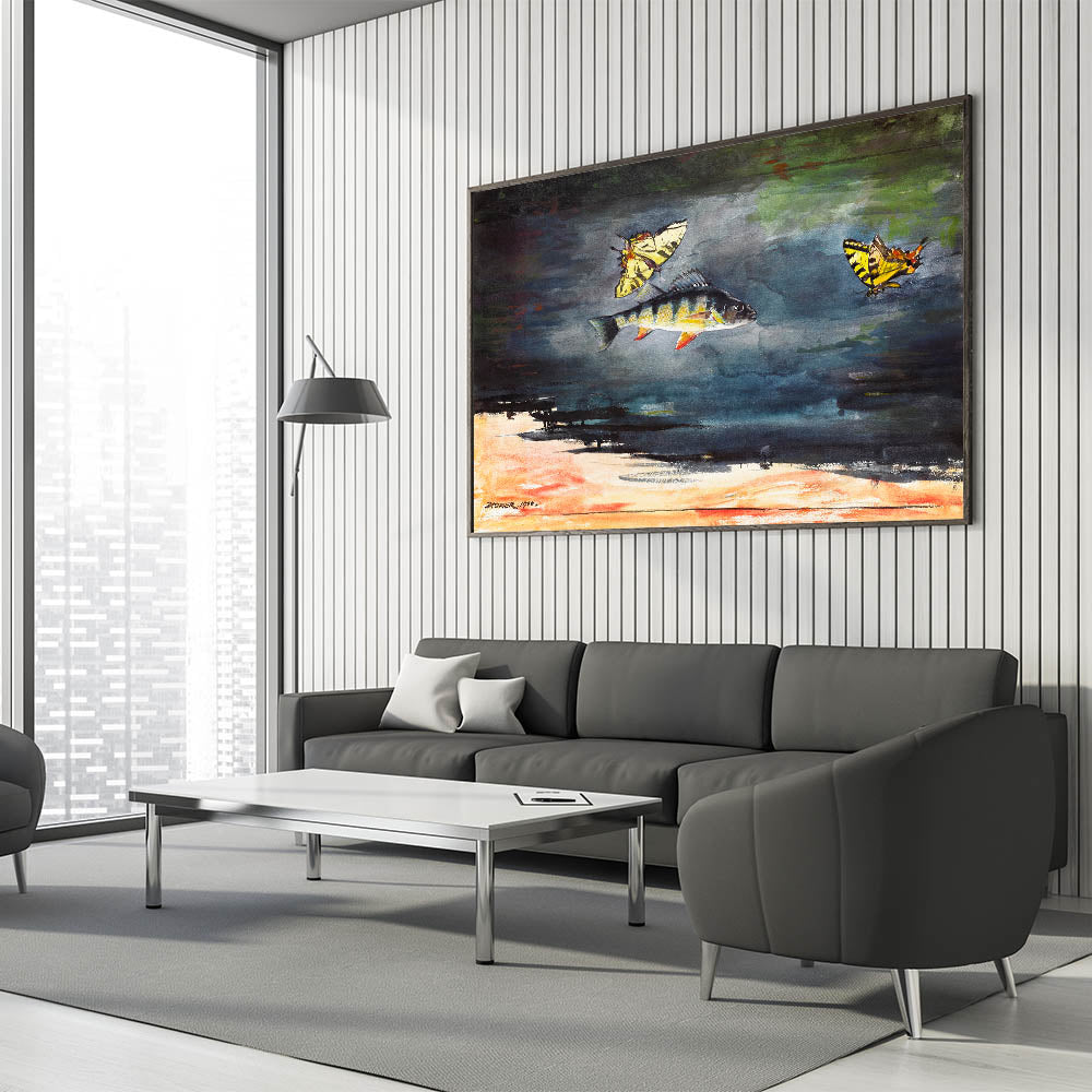Realism Art Print of Fish and Butterflies - Nature’s Aquatic Harmony