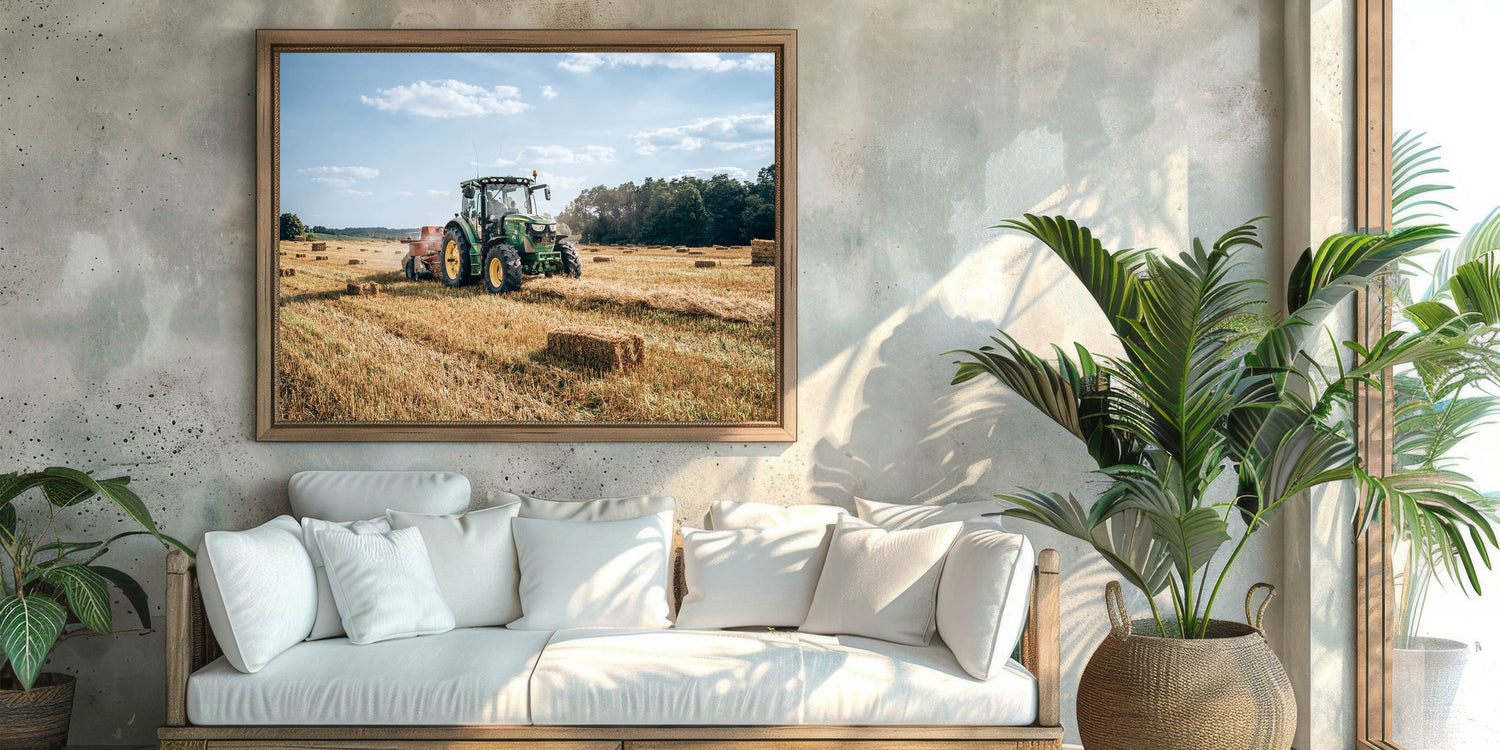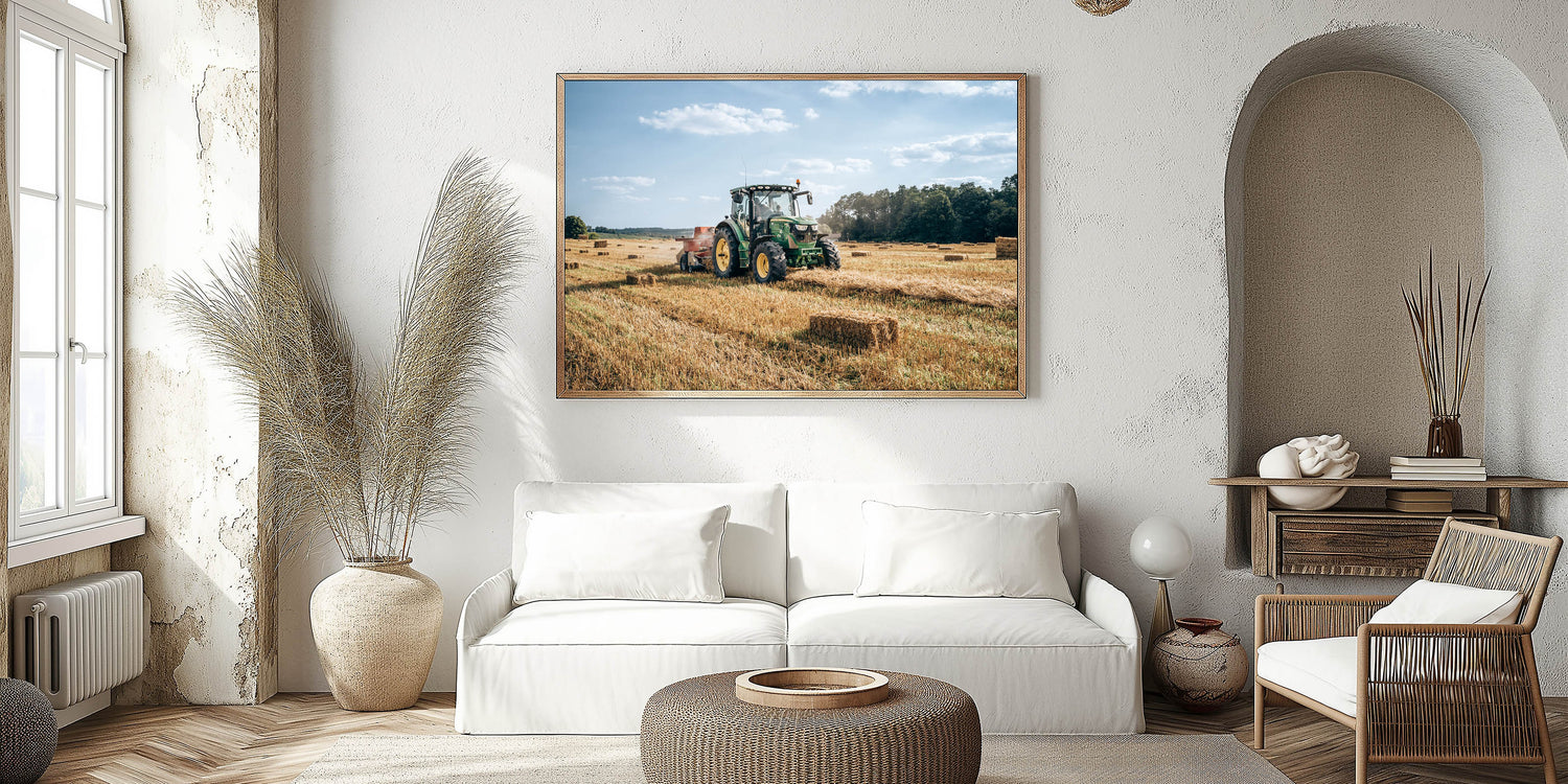 This vintage farmhouse print evokes the essence of country living, making it the perfect addition to your home. Choose from various materials, such as framed prints or acrylic glass, to match your style. Whether you're looking for a statement piece or a finishing touch to your room, this tractor print will bring the serenity of rural life into your space.