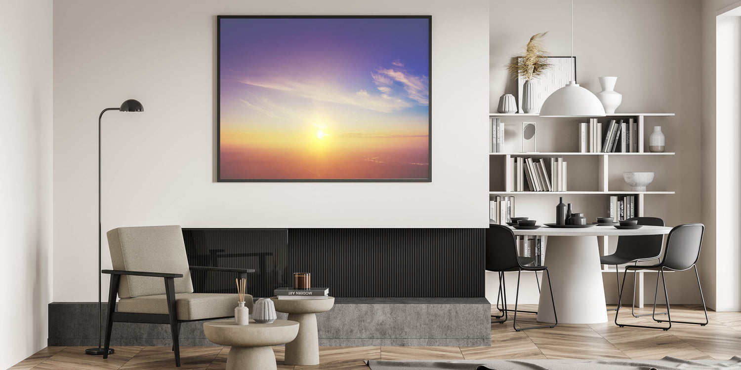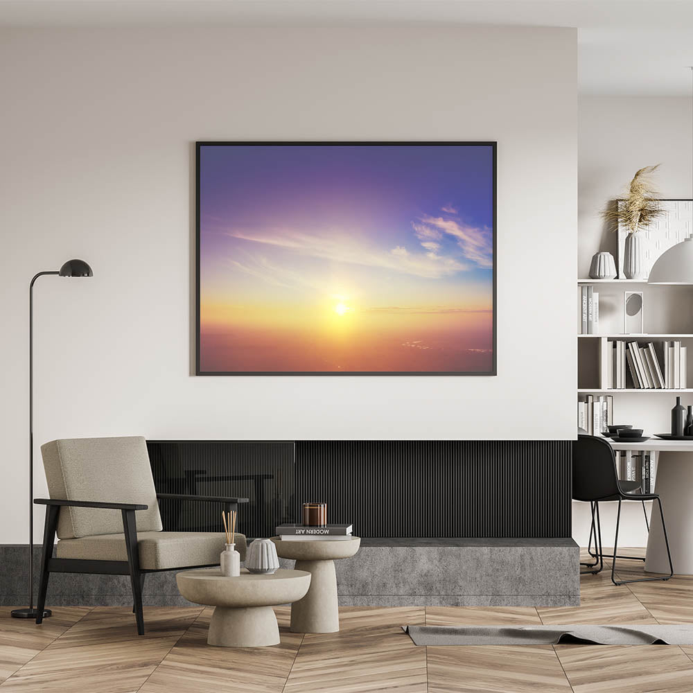 Enhance your home with relaxing nature wall decor that radiates warmth and harmony. The glowing sun and ethereal sky create a peaceful escape, perfect for any room. Let this captivating sunset transform your space with its serene beauty.