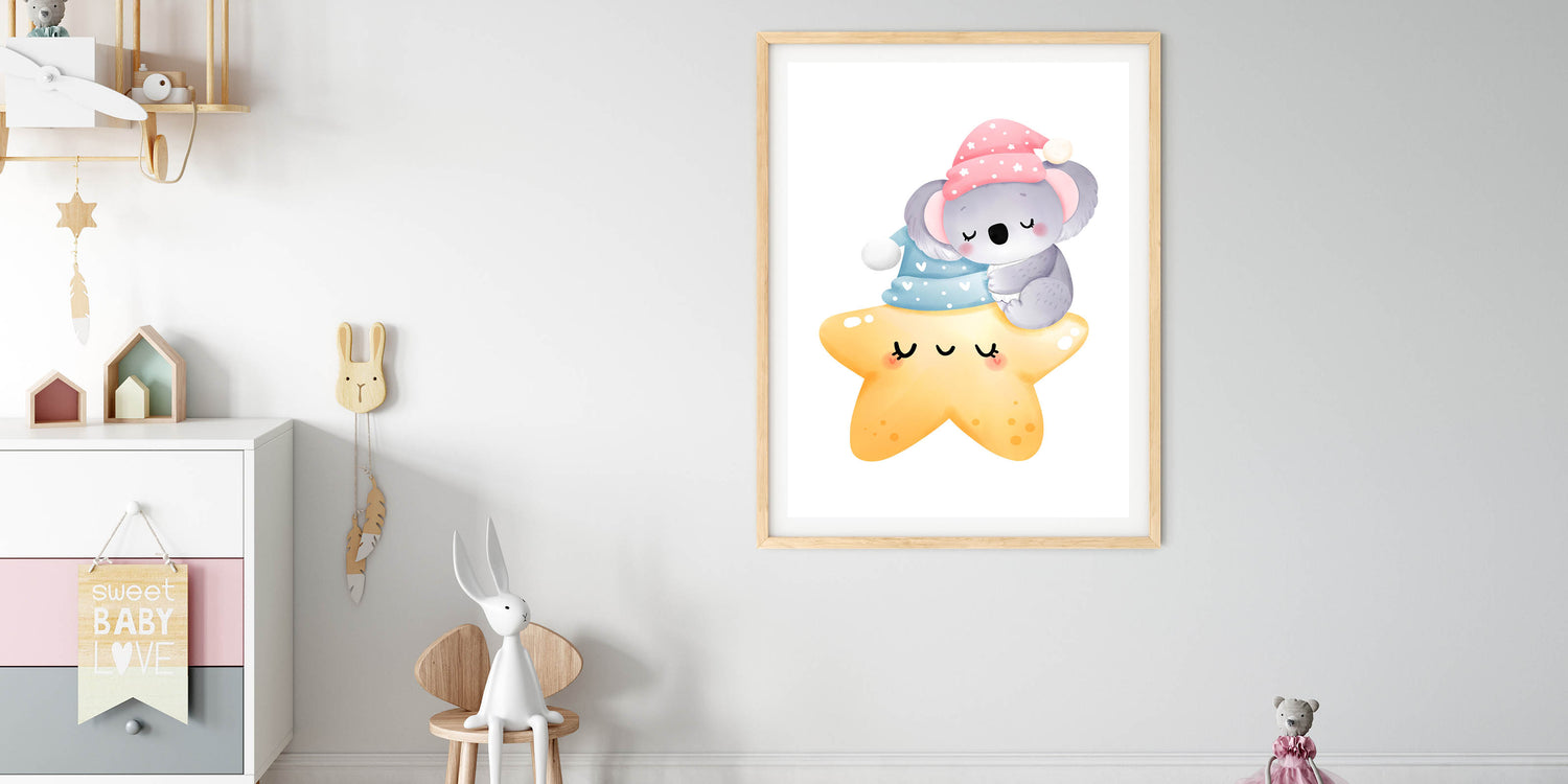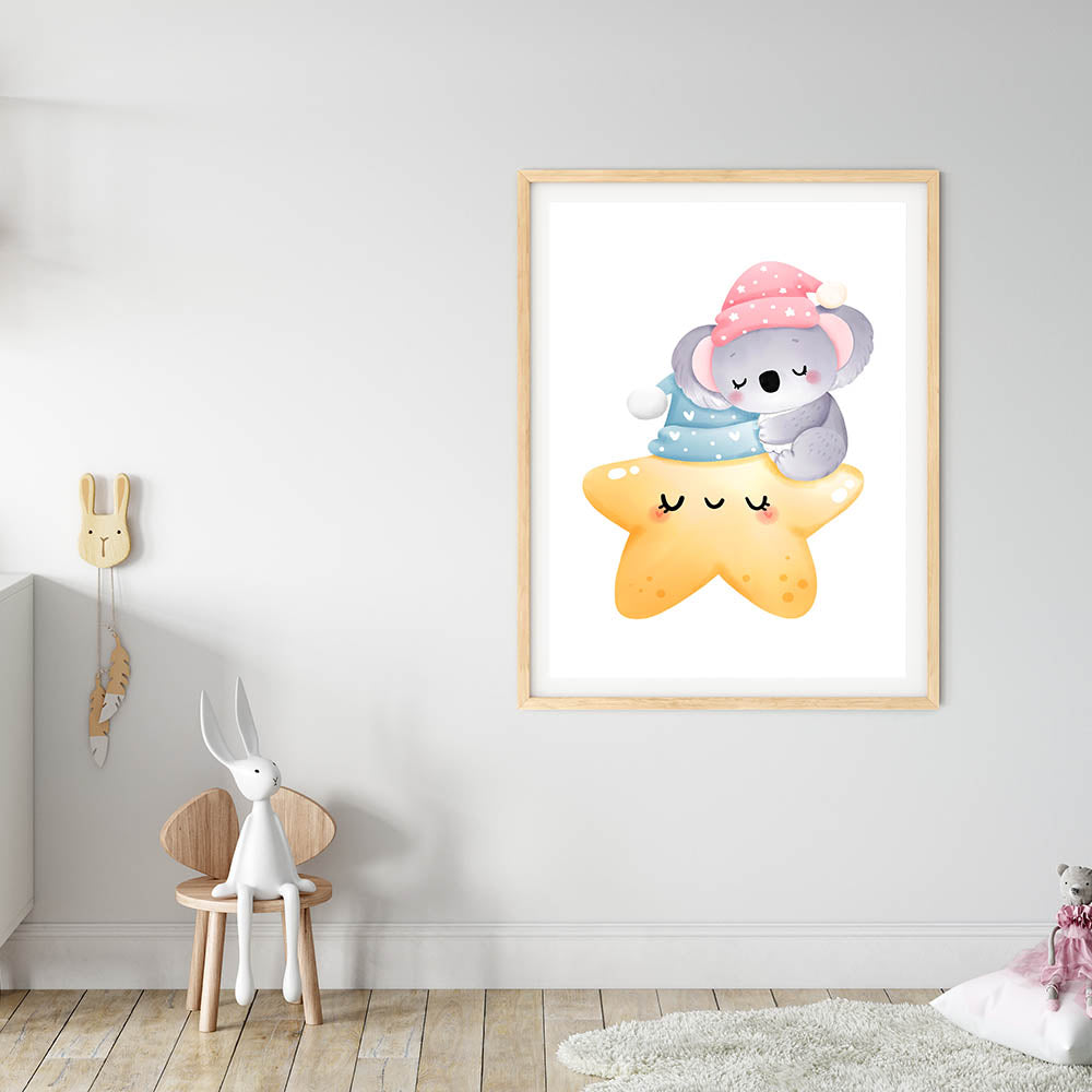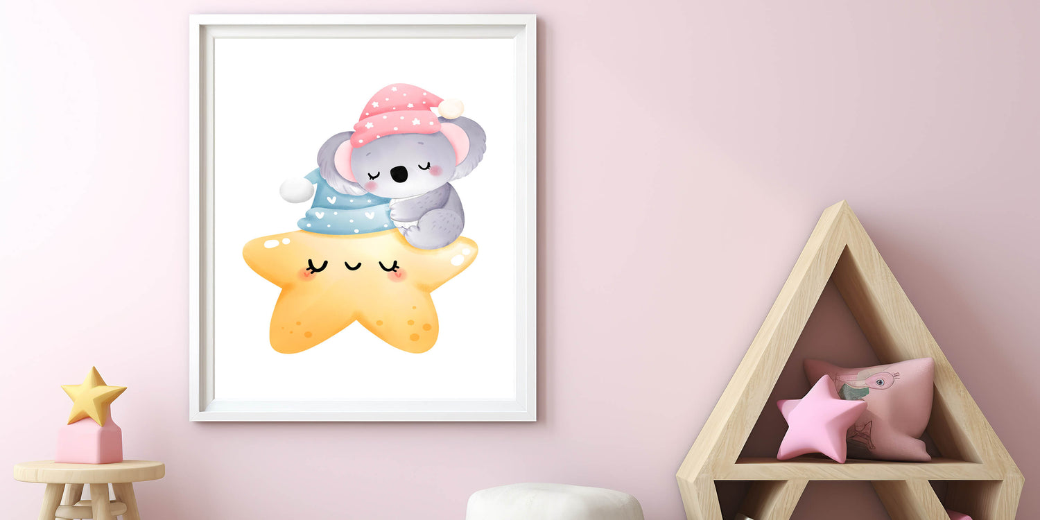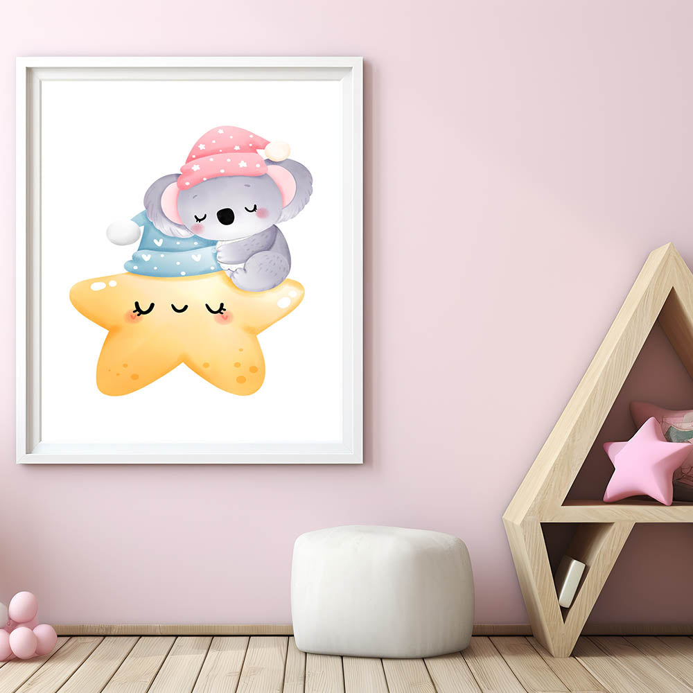 Sleeping Koala & Star Kids Room Print - Nursery Wall Art