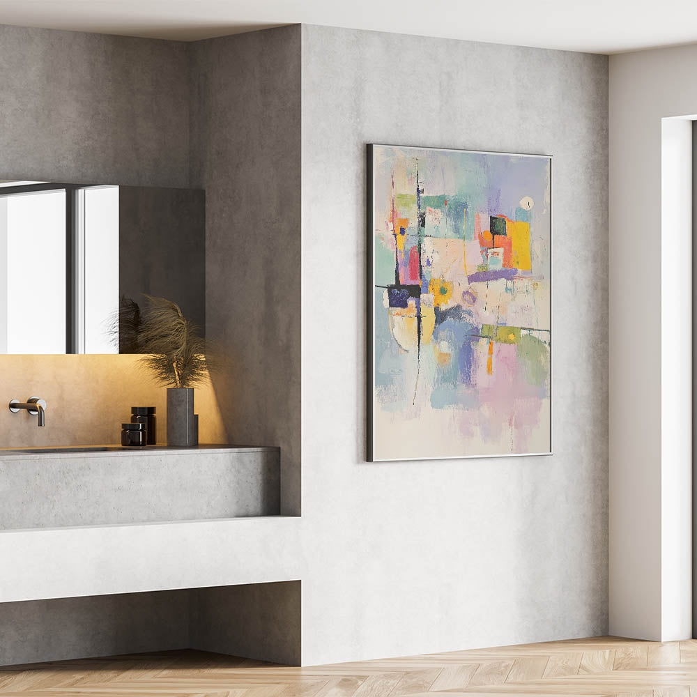 Enhance your space with the elegance of Abstract Expressionist Art for Home Decor. This Original Abstract Expressionist Painting features a soothing pastel palette of lavender, mint green, peach, and pale blue, creating a dreamy, modern aesthetic. Perfect for those who love Expressionist Canvas Wall Art, this piece evokes serenity and artistic sophistication.