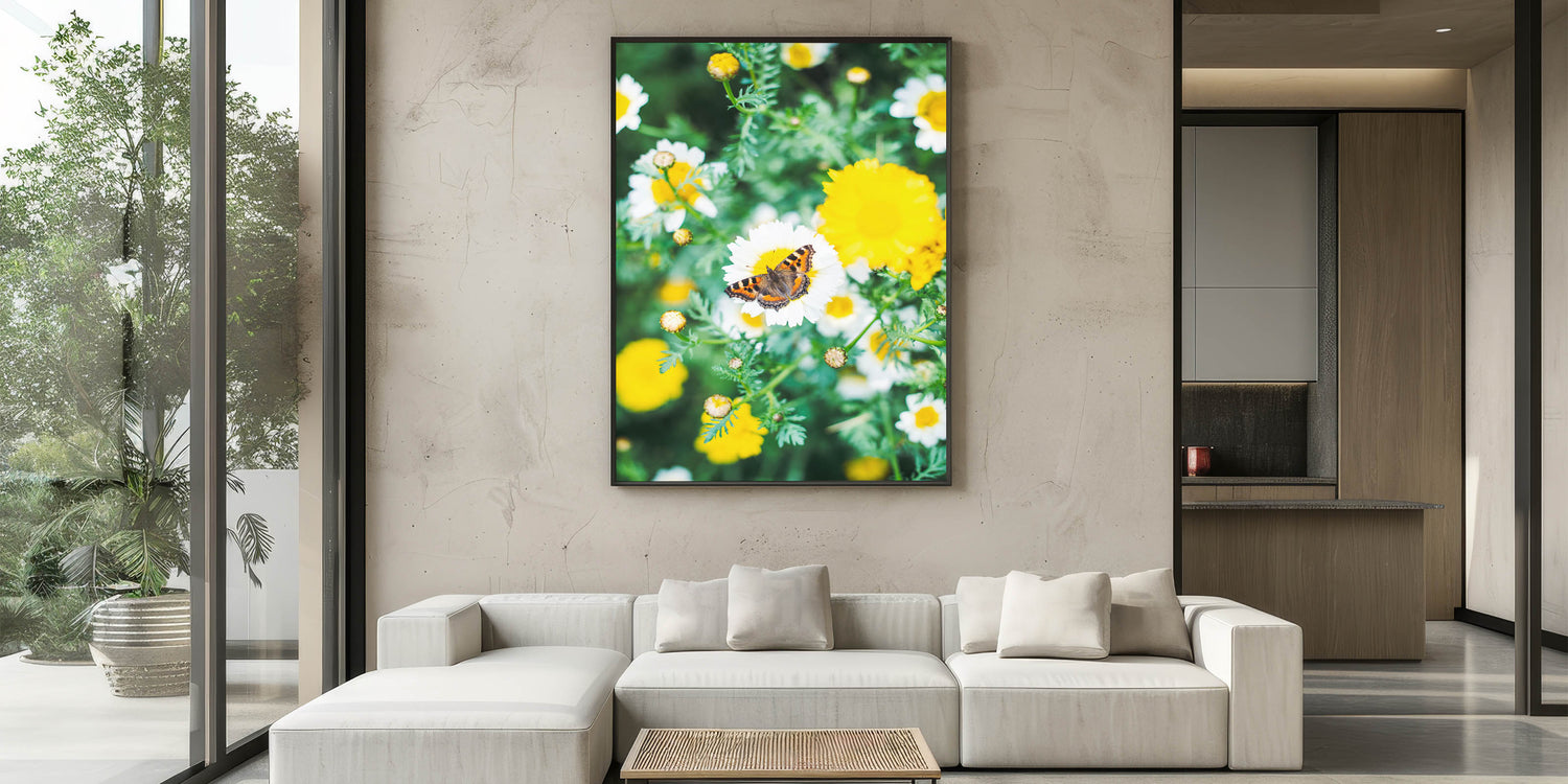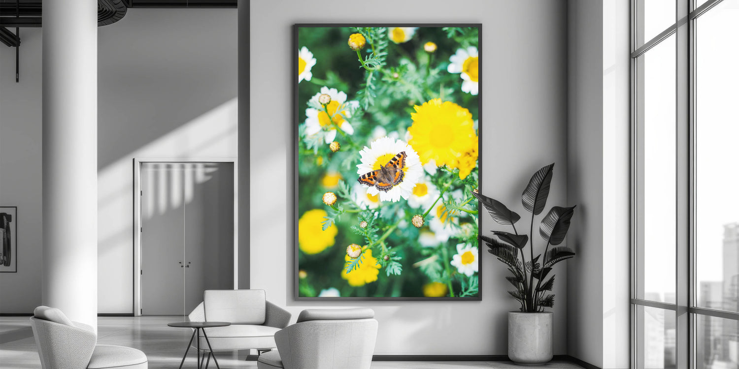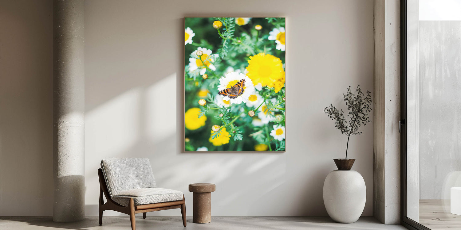 This Spring Art Print radiates warmth and vibrancy, creating an inviting and uplifting ambiance. The sun-kissed daisies and the delicately perched butterfly bring a touch of nature’s harmony indoors. Whether you love floral artwork, appreciate the delicate beauty of butterflies, or want to refresh your home with a cheerful spring-inspired design, this print is a timeless choice.