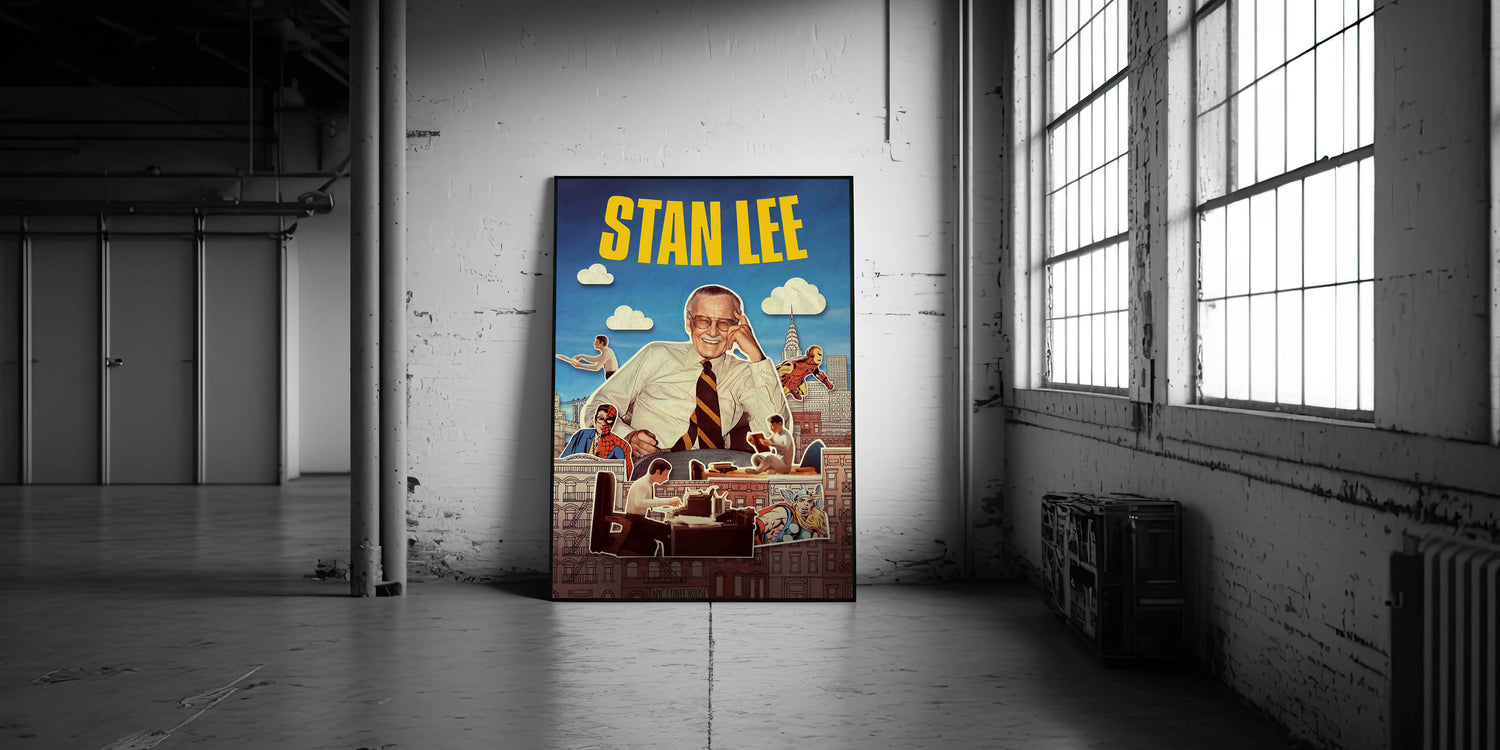 Celebrate the legacy of a true superhero visionary with this Stan Lee 2020s Vintage Movie Poster. A vibrant collage of comic icons and the man behind them, this Retro Film Art captures the magic of Marvel’s golden era through an Authentic Vintage Style.Designed with colorful paper cutout textures and classic comic book flair, this Limited Edition Cinema Art is a must-have for collectors, comic fans, and creatives alike.