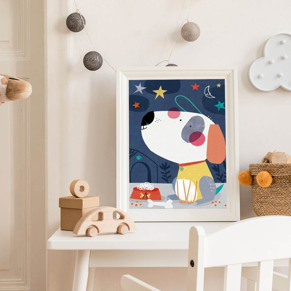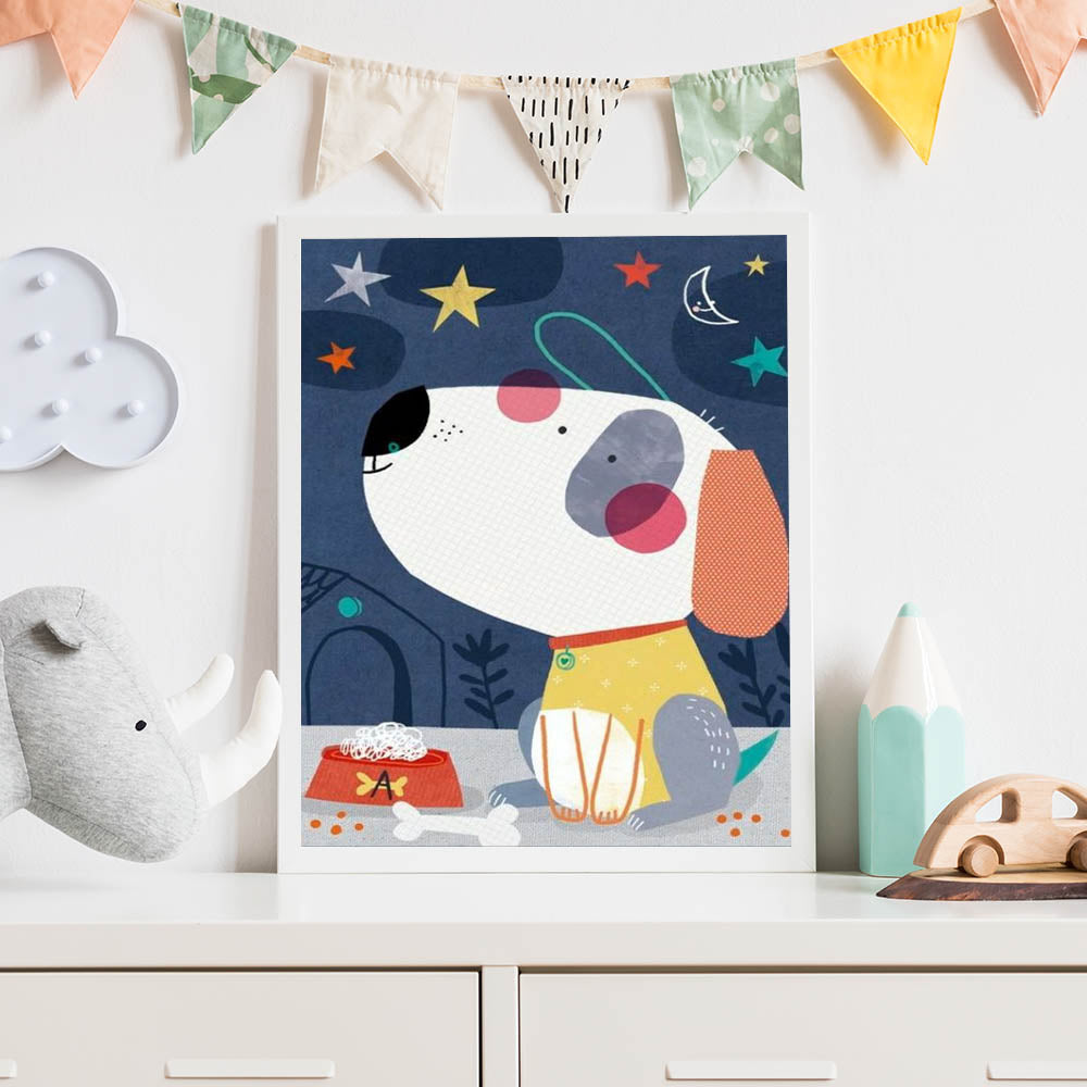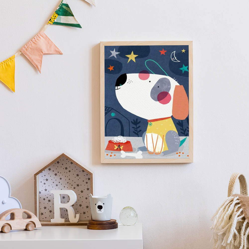 Starry Night Dog - Kids Wall Art Prints Boys Room Wall Art
