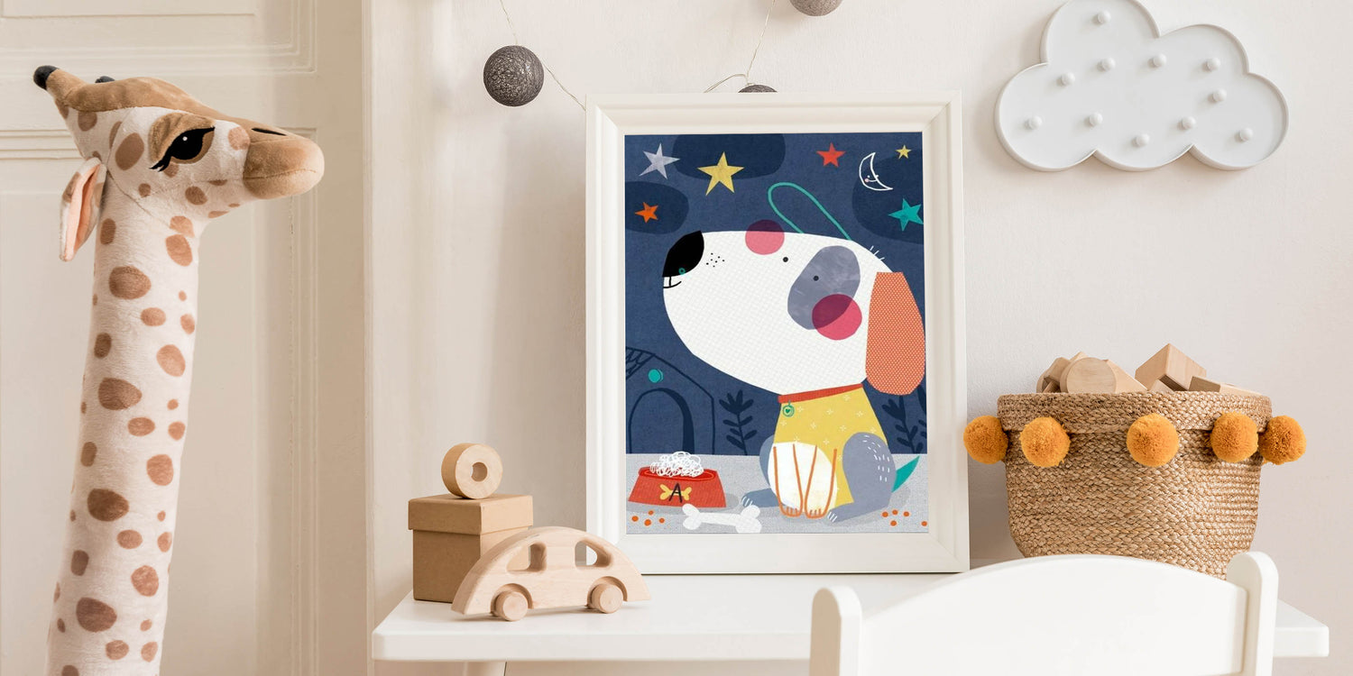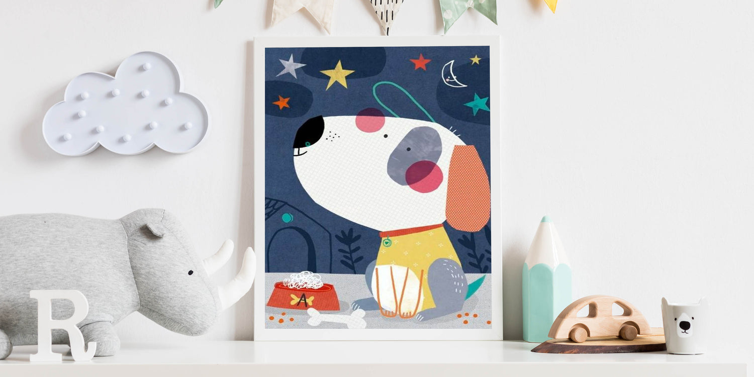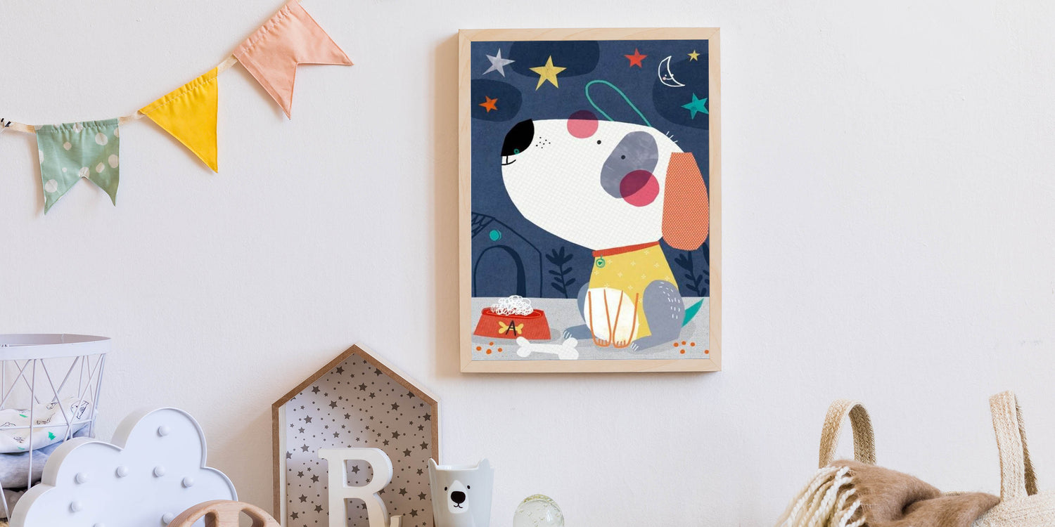 Starry Night Dog - Kids Wall Art Prints Boys Room Wall Art
