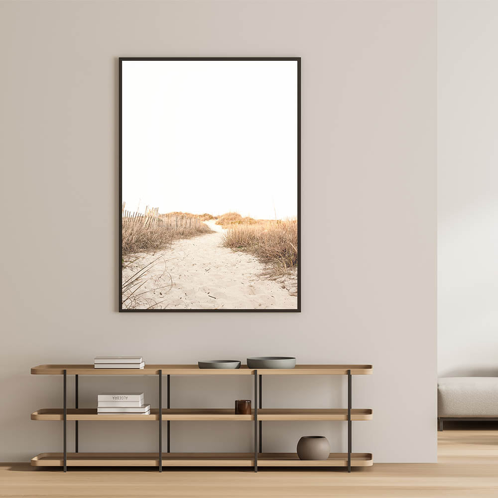Step into the beauty of summer with this Sandy Path Coastal Nature Canvas Print. Featuring a soft sand path winding through golden beach grass under a serene sky, this artwork embodies the peaceful charm of a summer seaside retreat. Ideal for creating a calm, nature-inspired atmosphere in any space.