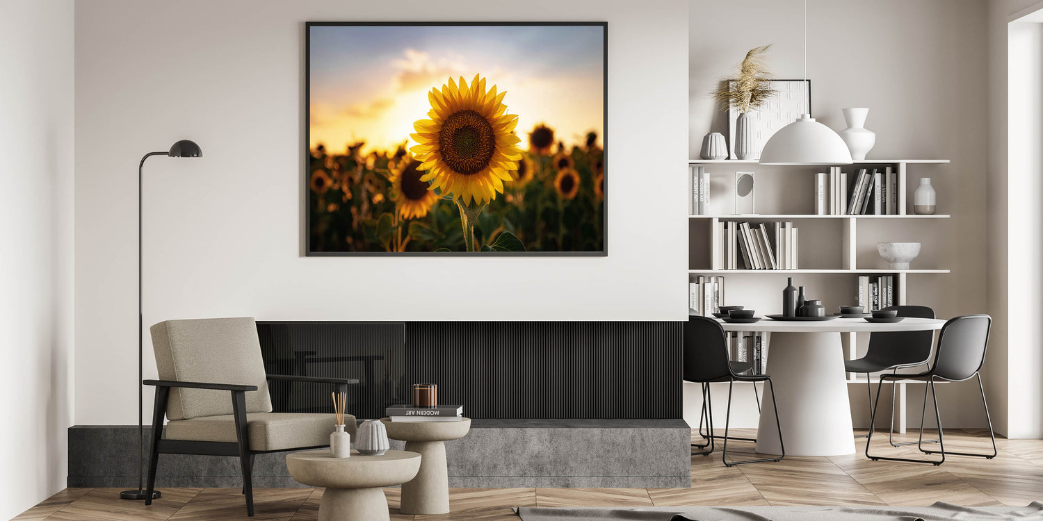 Whether you're looking to celebrate Kansas landscapes or enhance your decor with scenic Kansas wall art, this sunflower artwork delivers a blend of natural beauty and elegance. Available in various sizes and formats, it’s a perfect fit for any space, offering a touch of Kansas City’s iconic nature scenes.