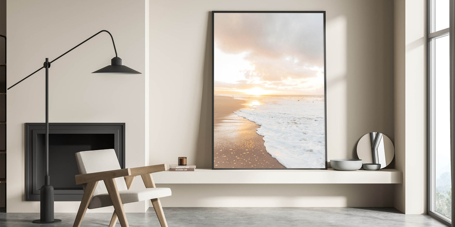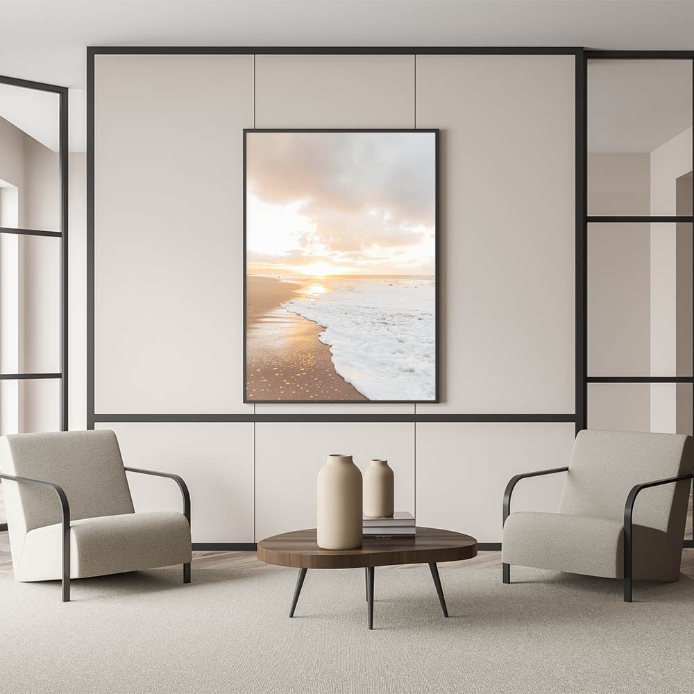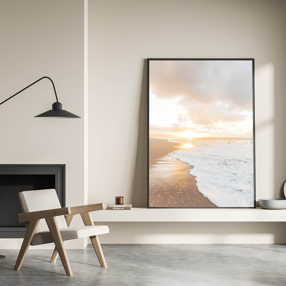 Transform your walls into a coastal paradise with this golden sunset beach print. Perfect for nature lovers and those seeking relaxing summer vibes, this piece brings warmth and tranquility to any home.