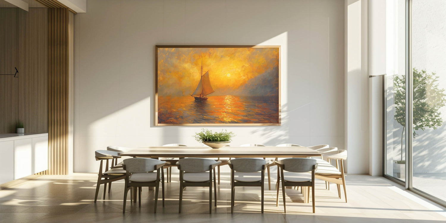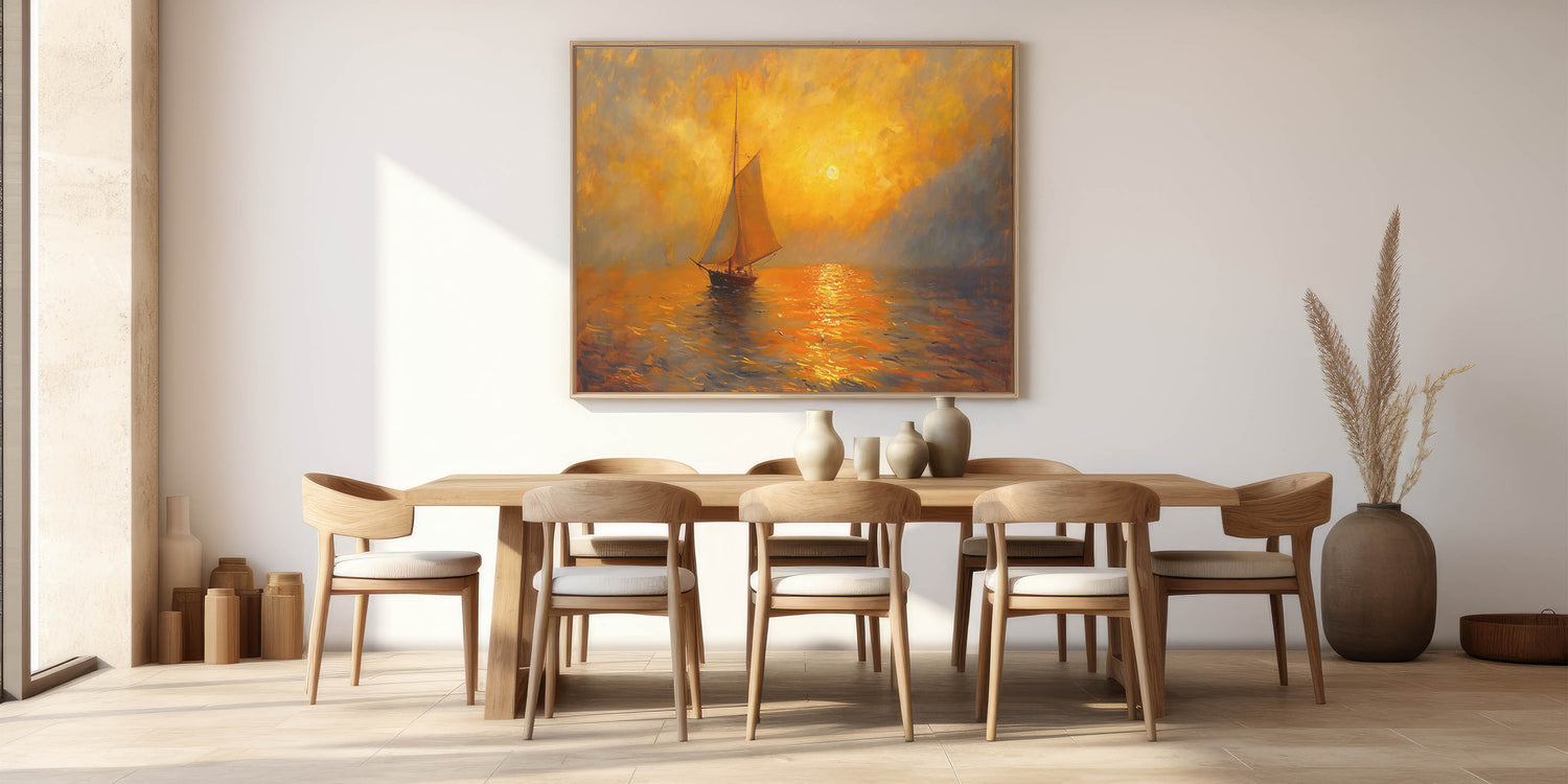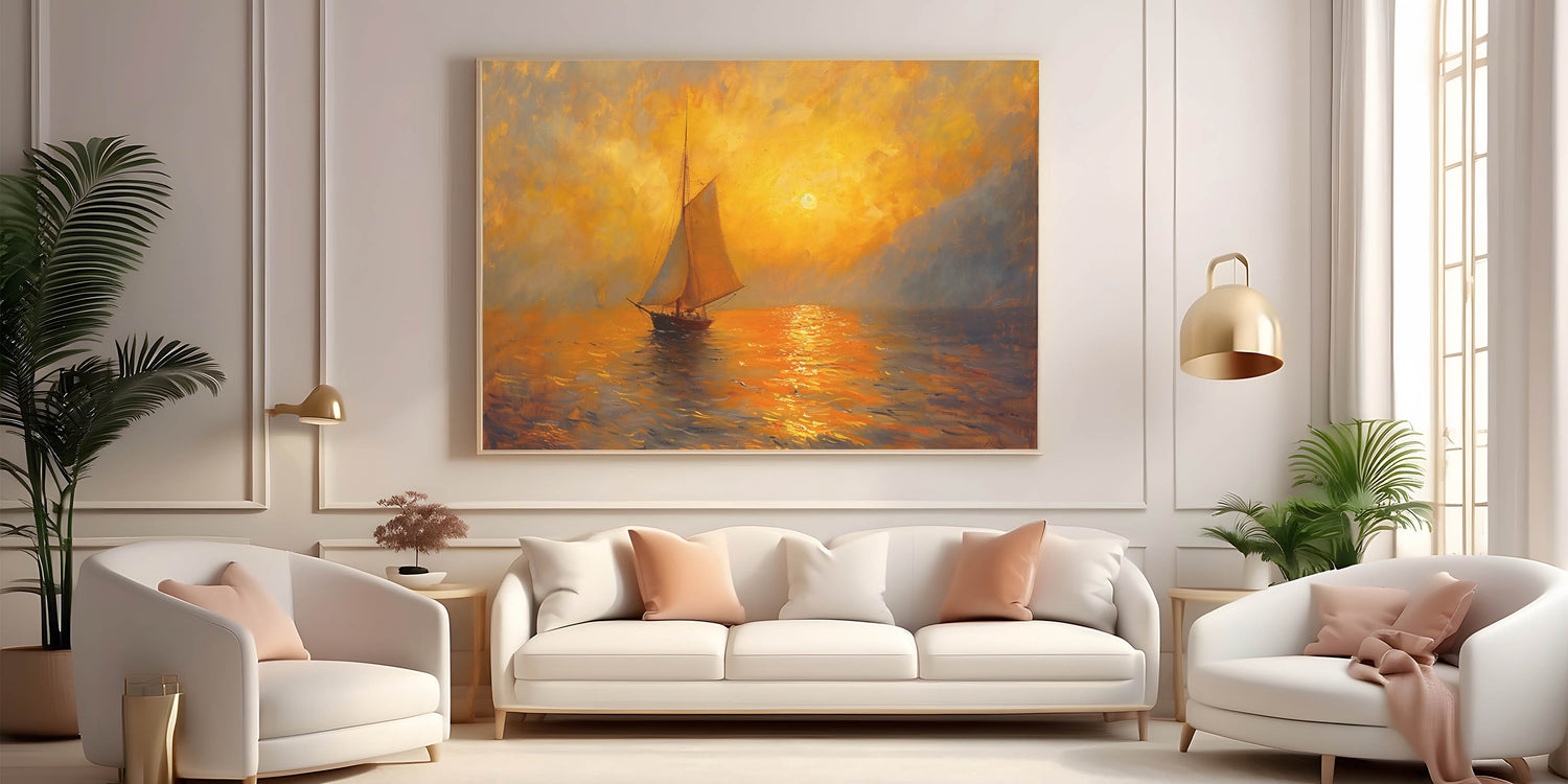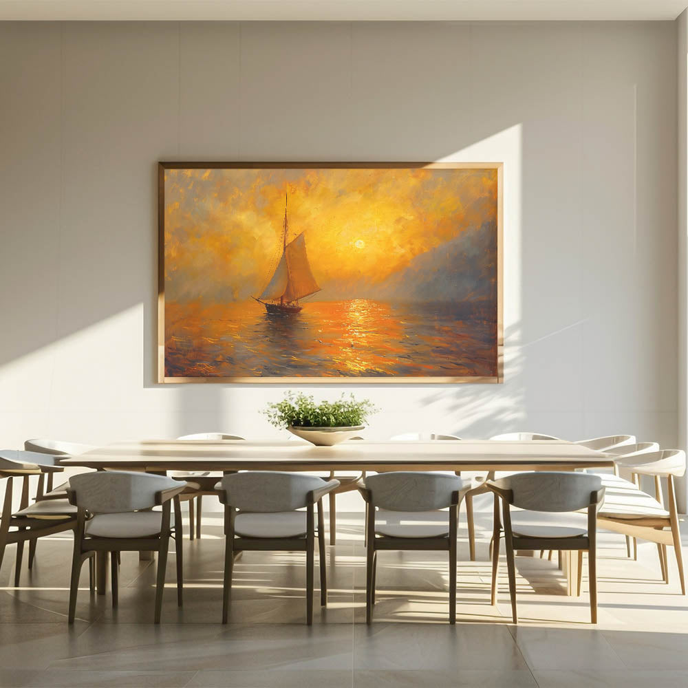 This sailboat sunset wall art is perfect for those who love the ocean and the beauty of golden hour. Its glowing hues and serene composition make it an elegant addition to any home.
