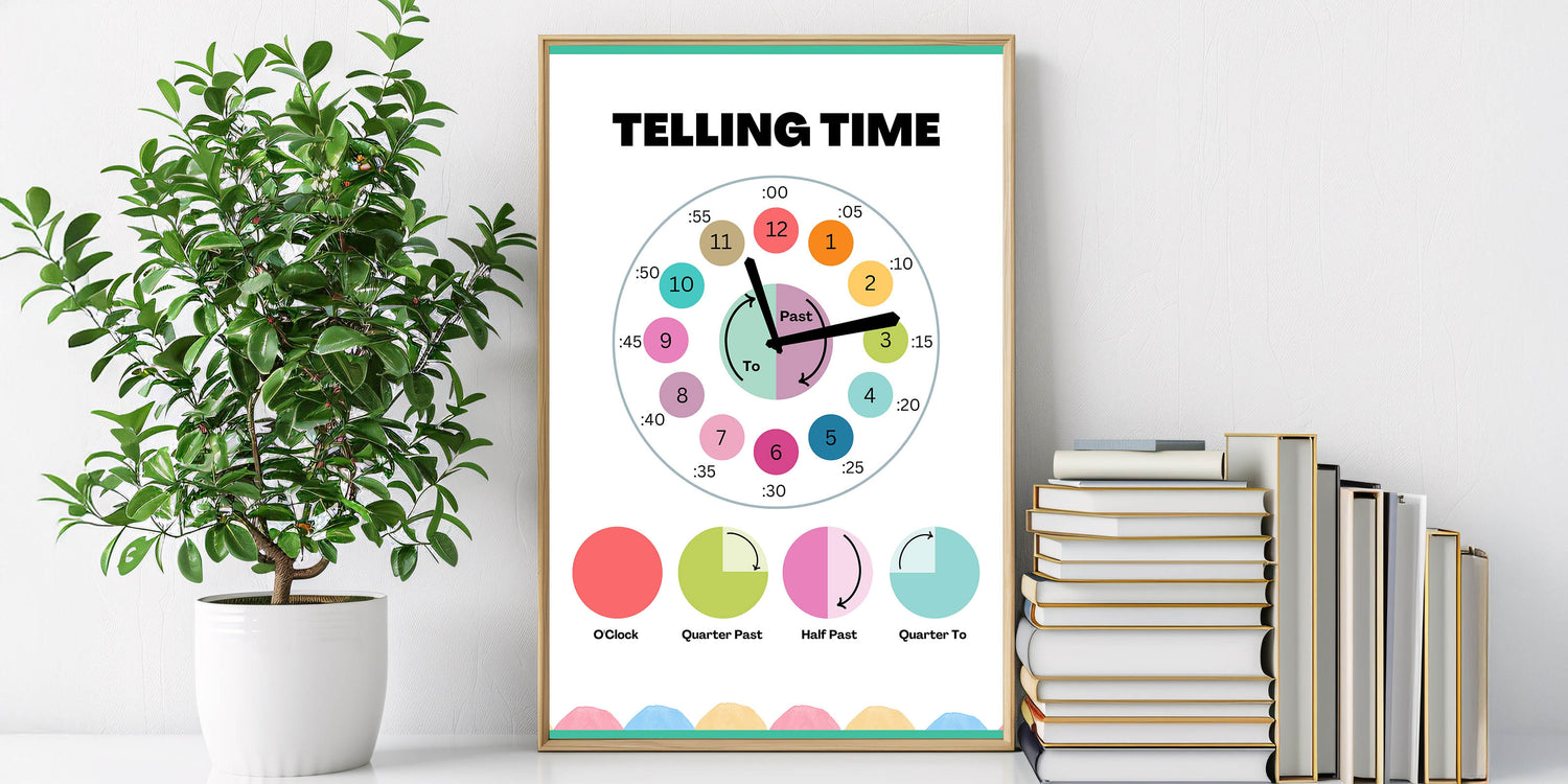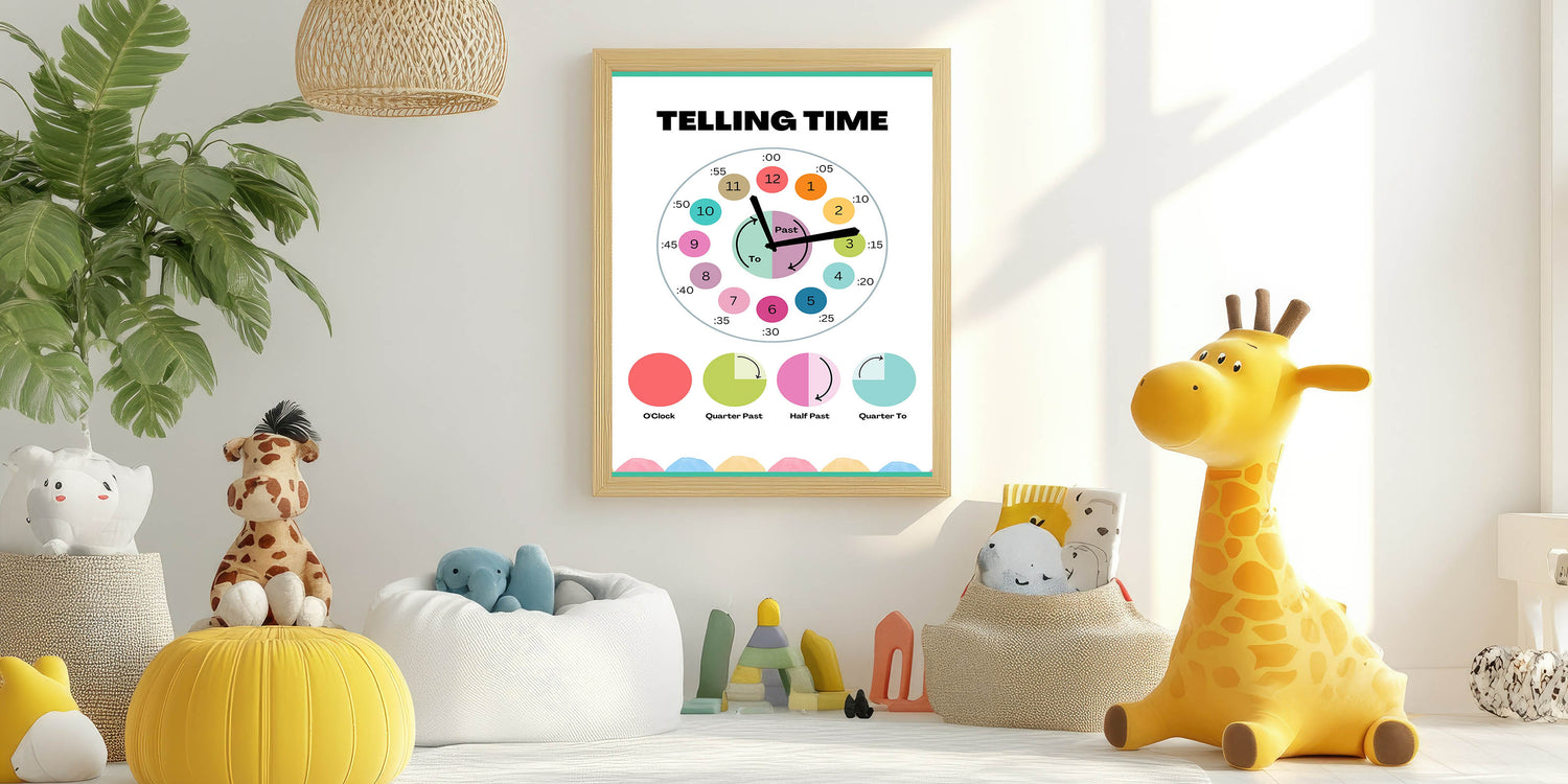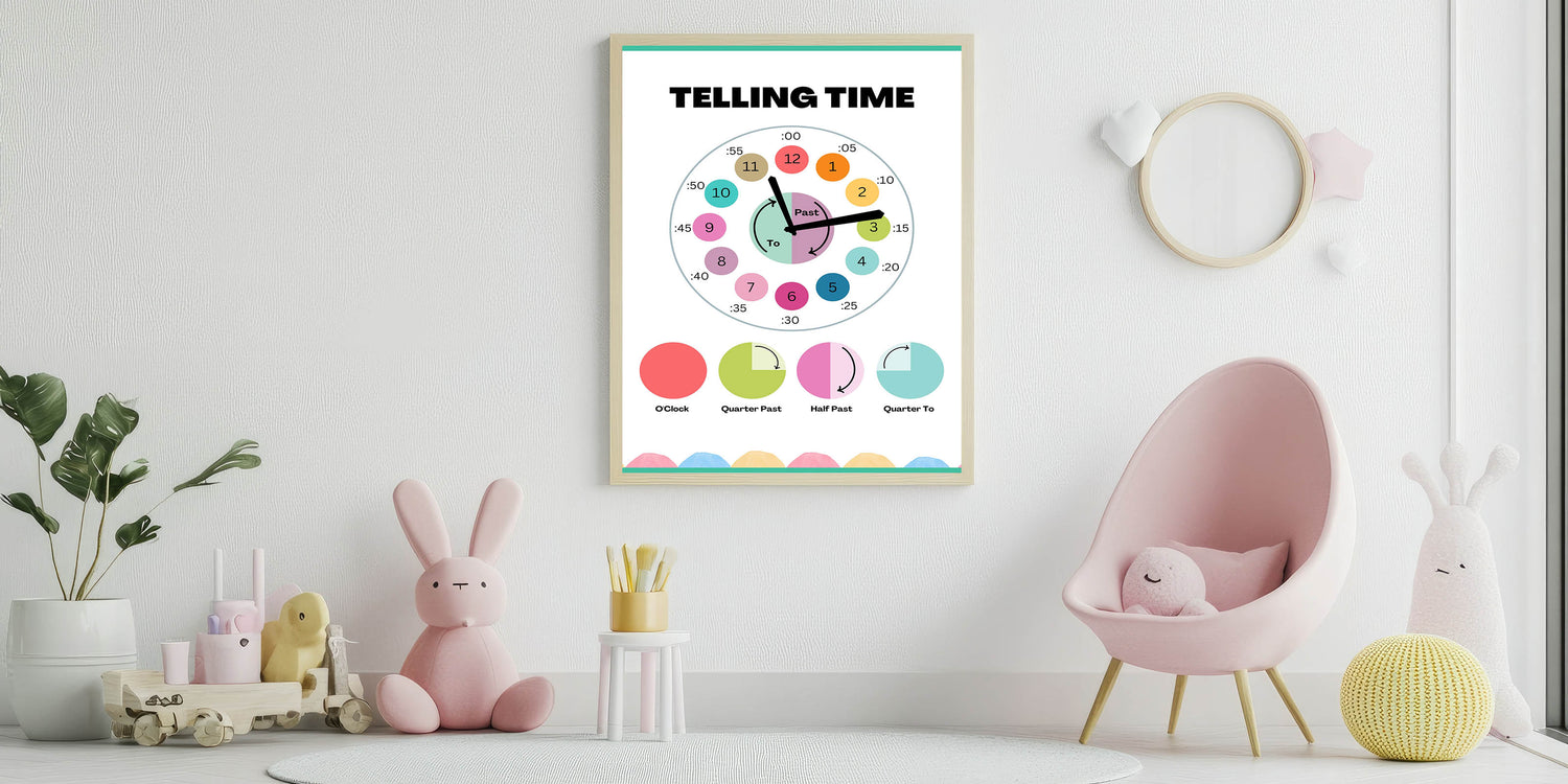 Telling Time Kids Educational Wall Art – Clock Learning Poster