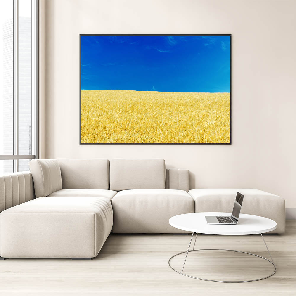 Ukraine Landscape Art – Golden Wheat Field Under Blue Sky Wall Print